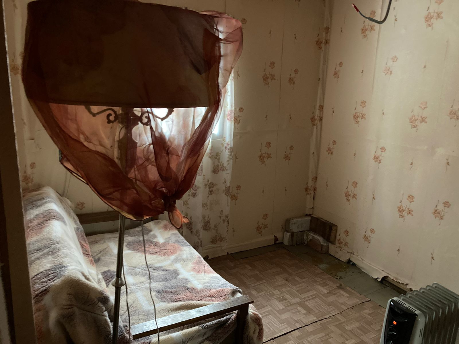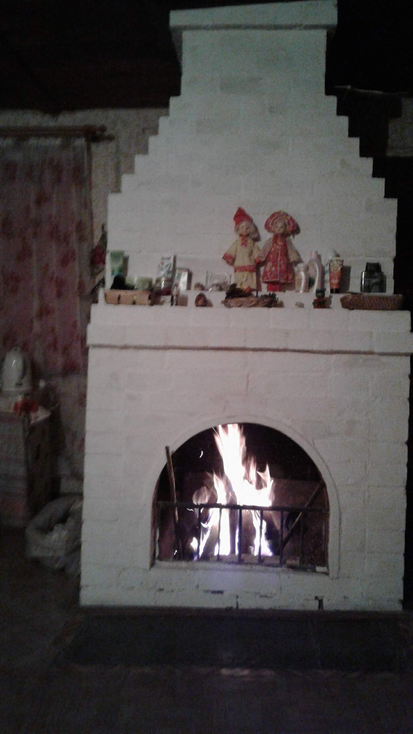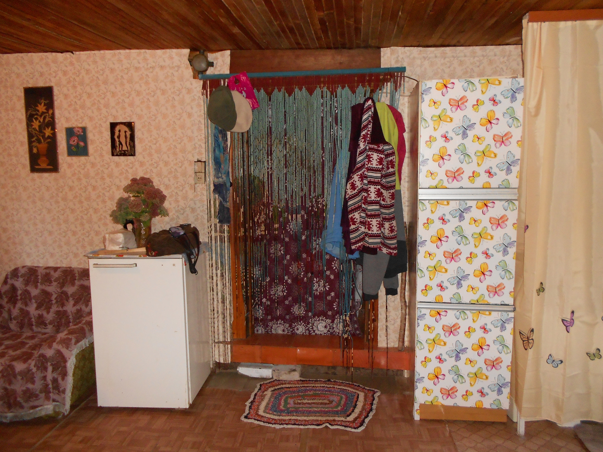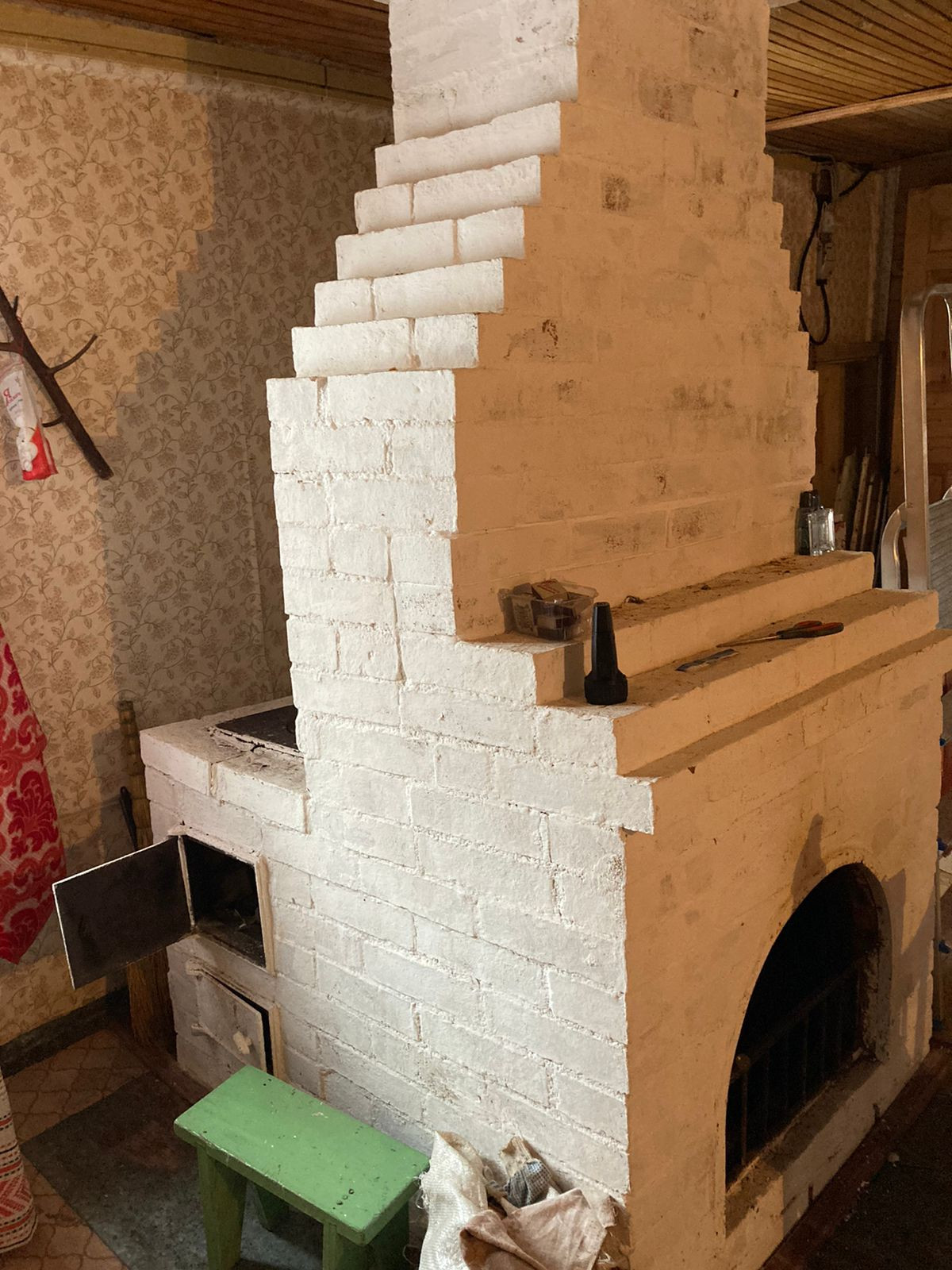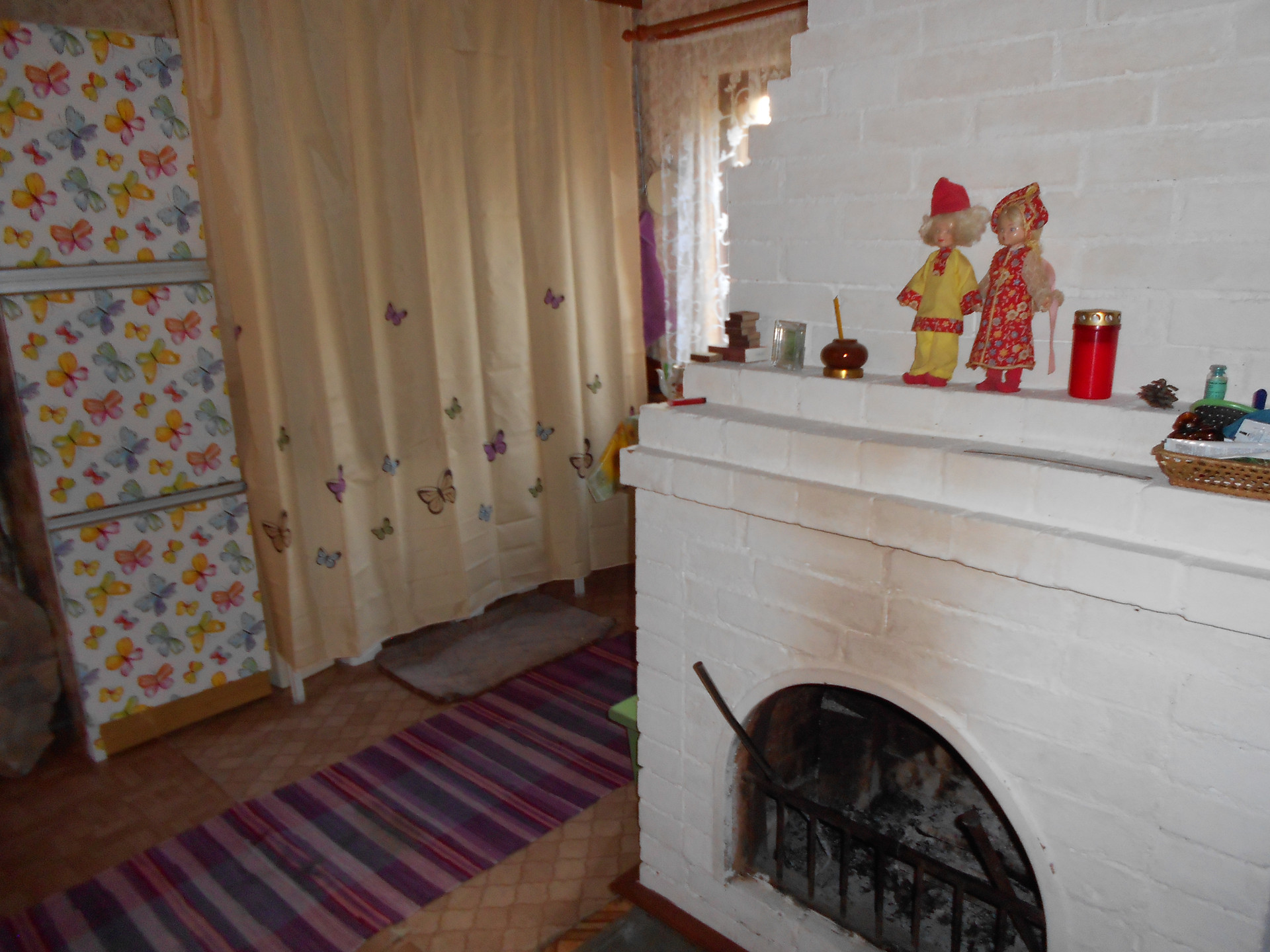 Внутренняя отделка - оргалит  поклеен обоями ,частично обшит вагонкой. Печь+камин. Пол деревянный покрыт оргалитом сверху линолеум.