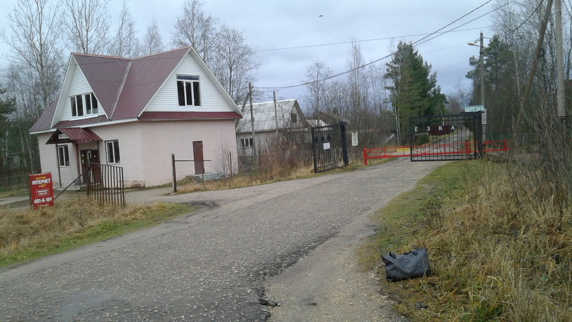 забор-металлическая сетка по периметру.