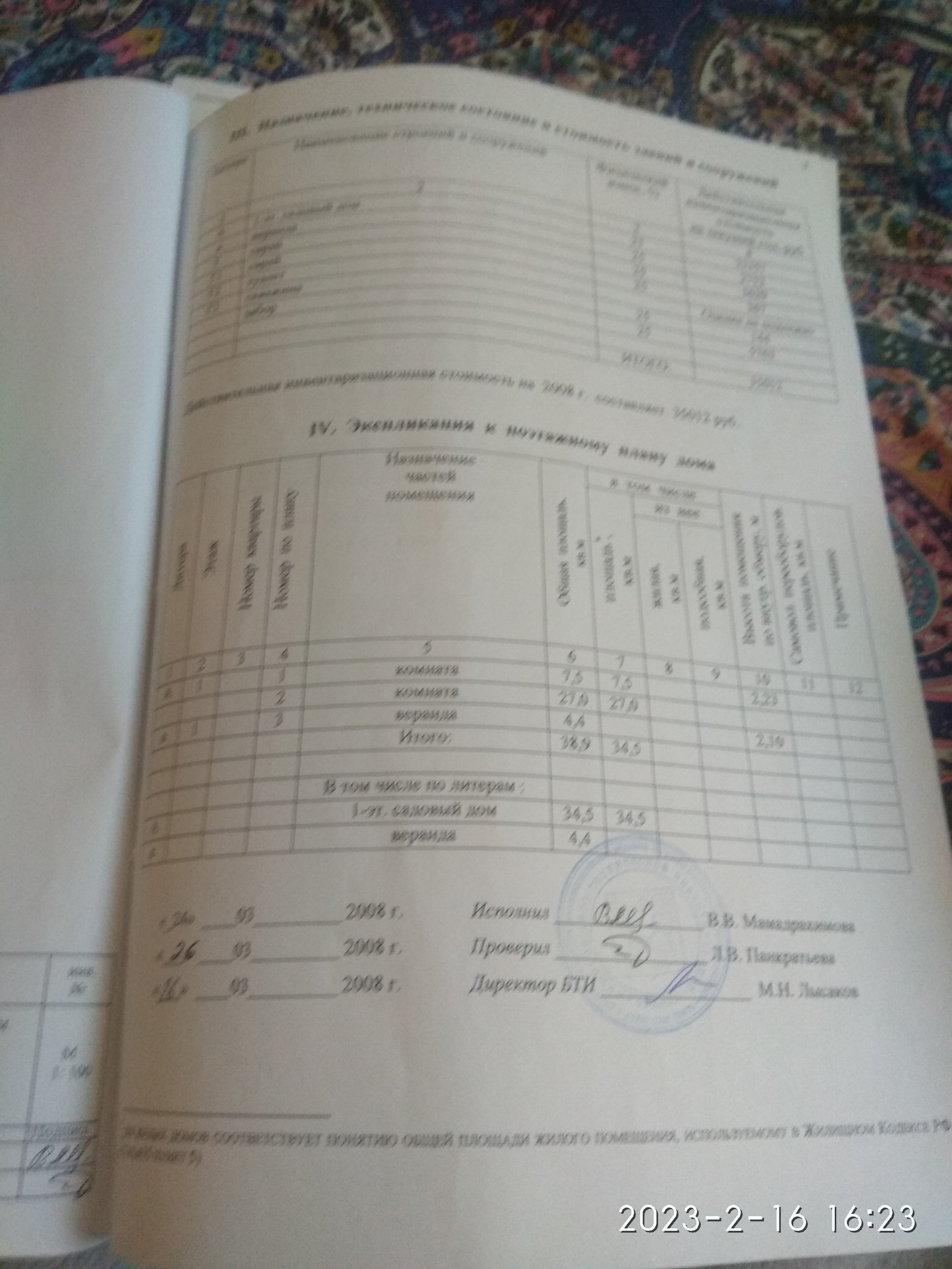 S= площадь= 40,4квм ; жилая 38,9 (7,5 +27) ; высота помещения 2,23м. Год постройки 1987.