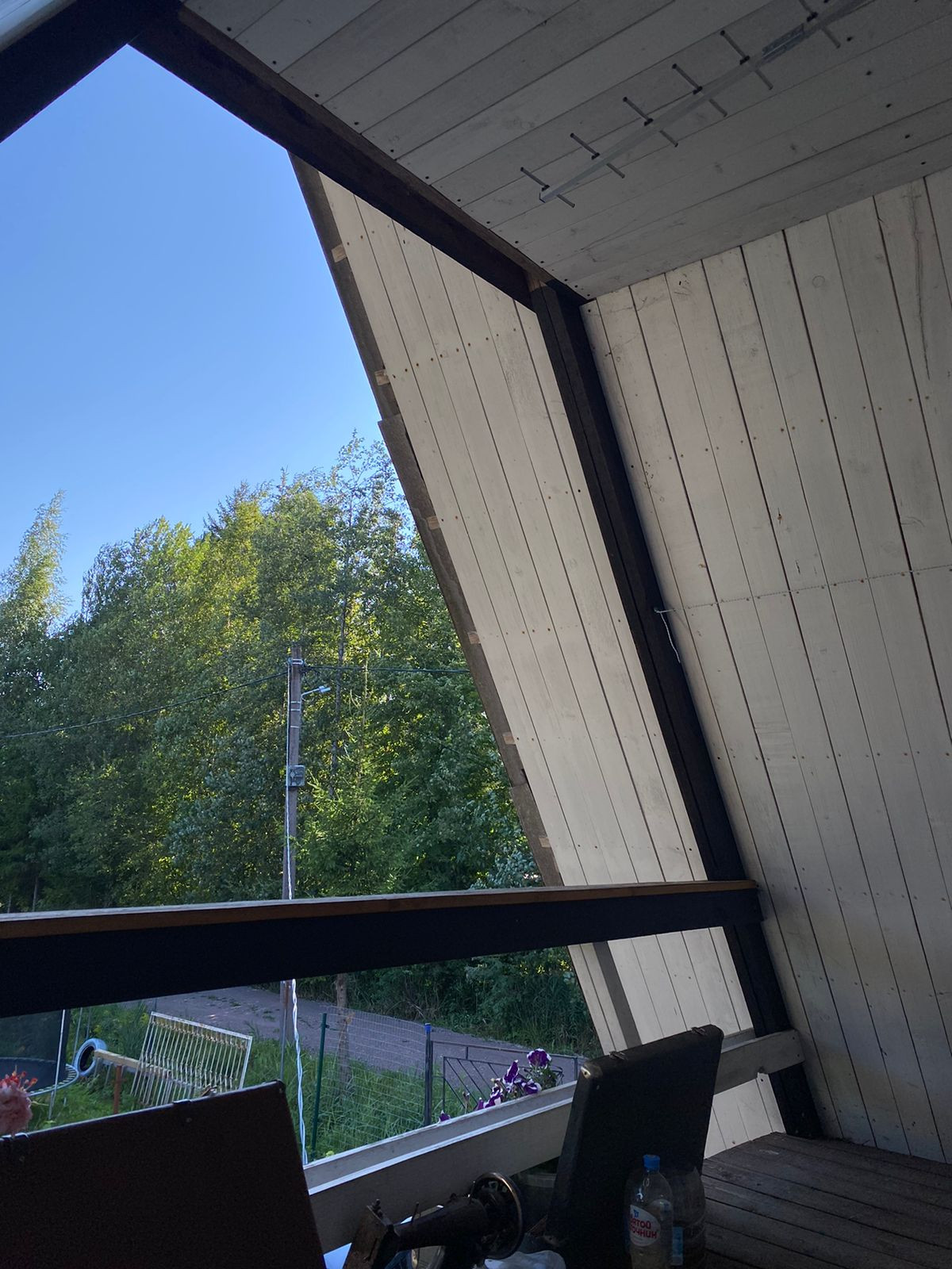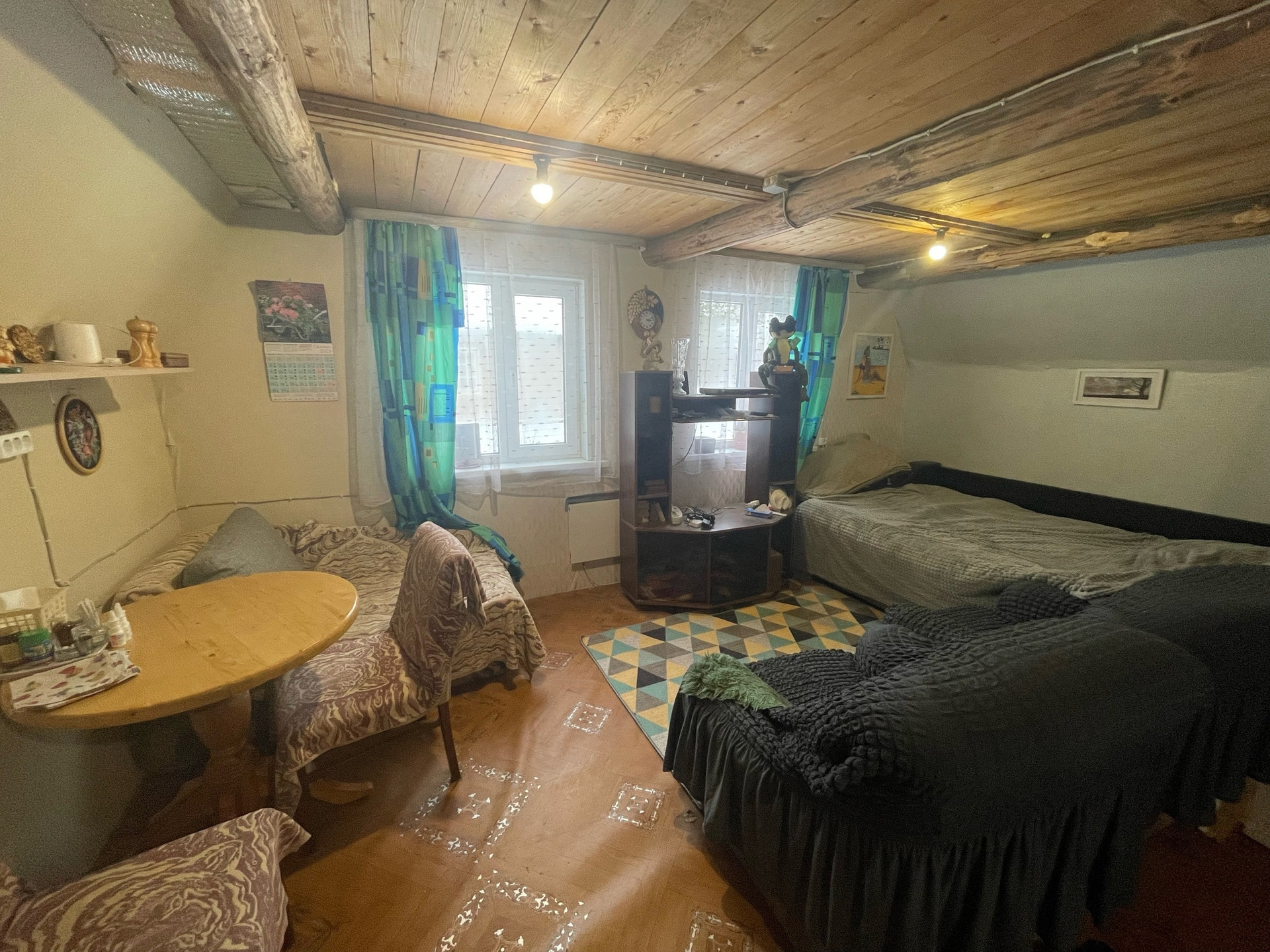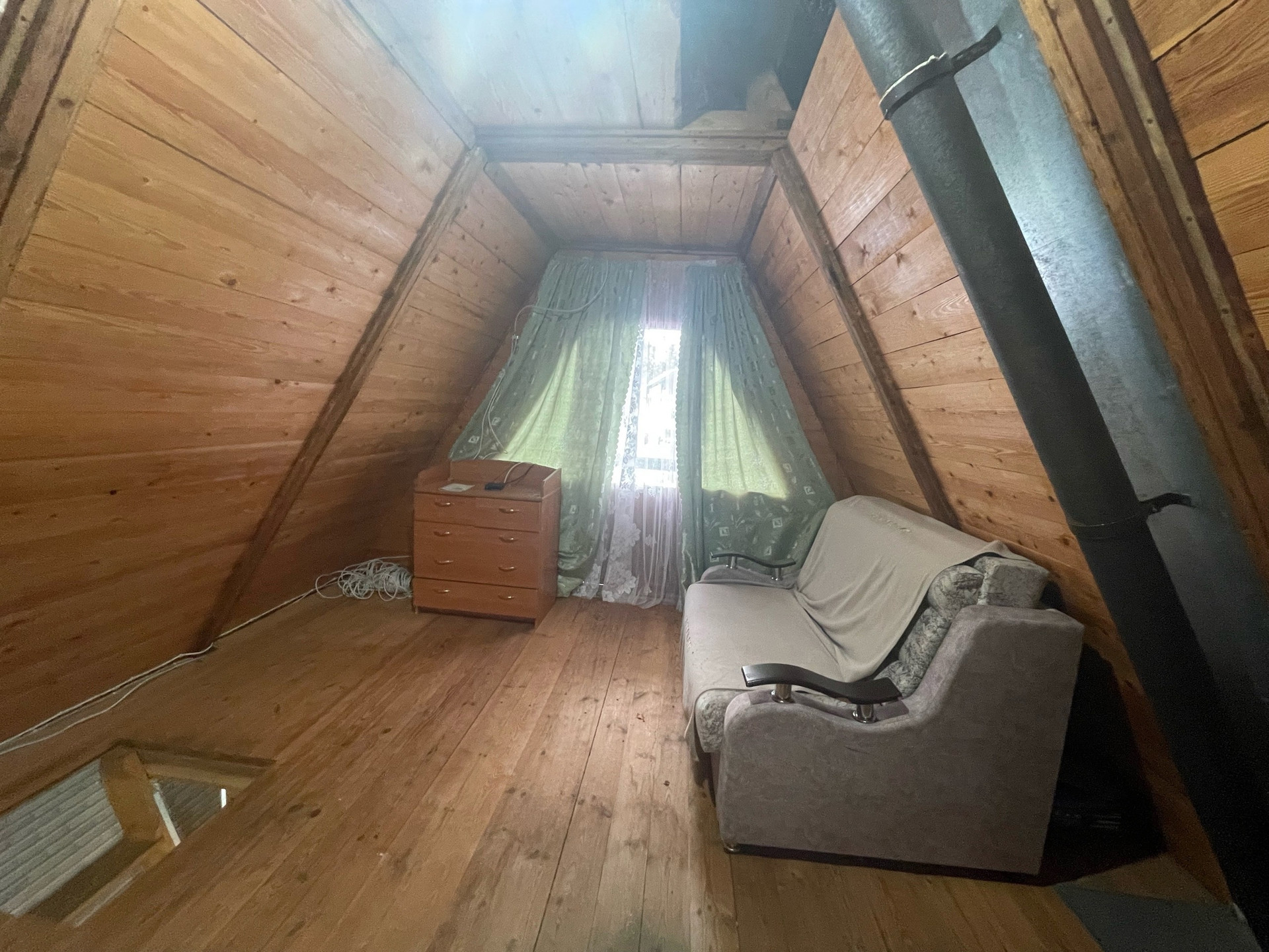 2. Жилой дом. Зарегистрирован в росреестре. ОП - 57,4 кв.м. На первом этаже кухня-гостинная, веранда и сан. узел: душевая и туалет. Вода в дом заведена. Бойлер - 80 литров. Первый этаж утепленный. В кухне гостинной установлены стеклопакеты. Отопление: печь-камин и электрические конвектора. Также на первом этаже есть закрытая веранда, которую можно использовать для хранения или в качестве коридора. Установлена новая металлическая дверь. На втором этаже просторная спальня с выходом на балкон. Есть телевизионная антенна и подведен до участка оптоволоконный интернет.