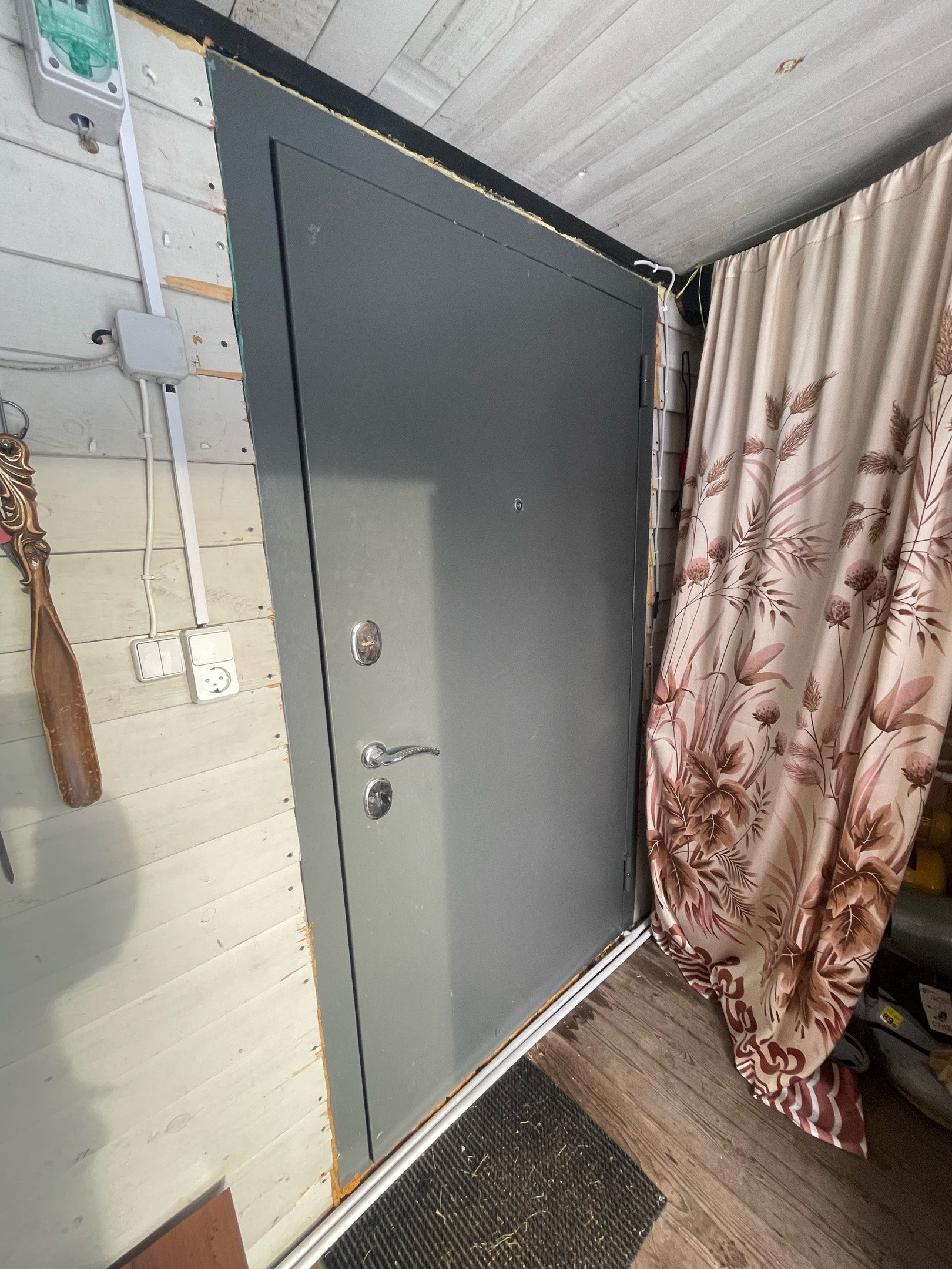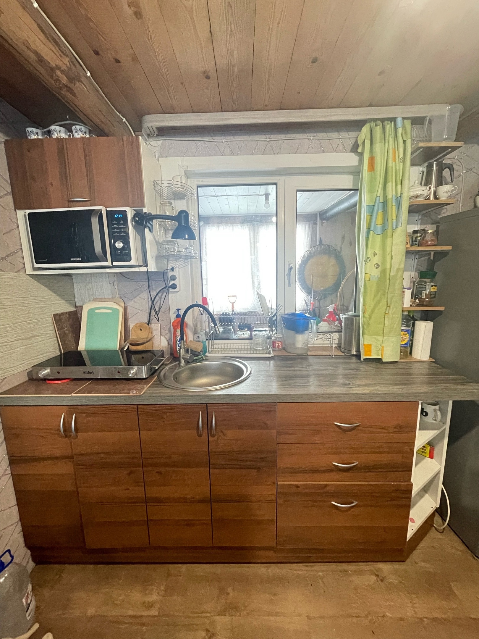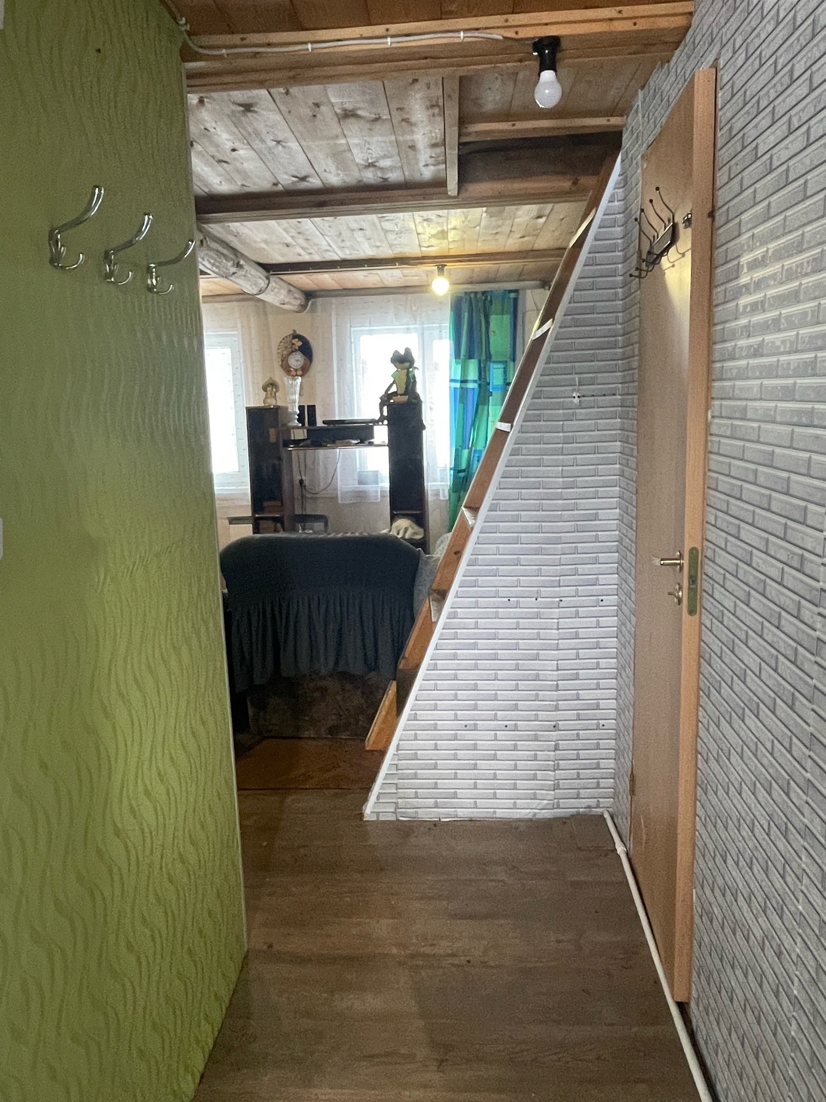 2. Жилой дом. Зарегистрирован в росреестре. ОП - 57,4 кв.м. На первом этаже кухня-гостинная, веранда и сан. узел: душевая и туалет. Вода в дом заведена. Бойлер - 80 литров. Первый этаж утепленный. В кухне гостинной установлены стеклопакеты. Отопление: печь-камин и электрические конвектора. Также на первом этаже есть закрытая веранда, которую можно использовать для хранения или в качестве коридора. Установлена новая металлическая дверь. На втором этаже просторная спальня с выходом на балкон. Есть телевизионная антенна и подведен до участка оптоволоконный интернет.