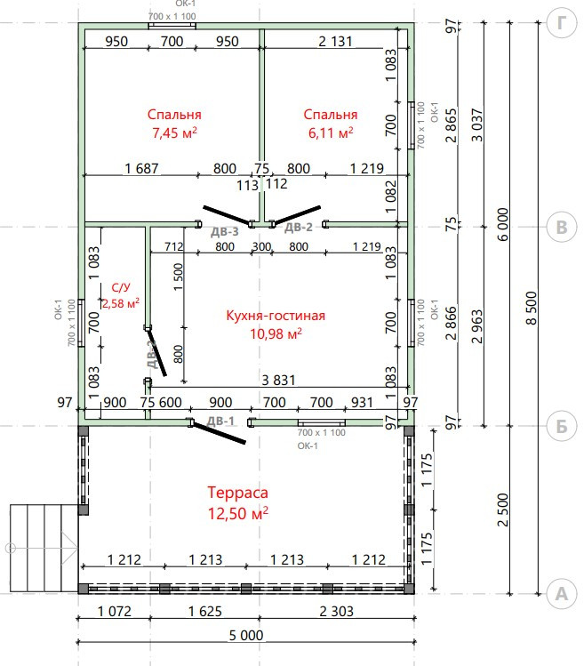 Общая площадь 42.8 м2