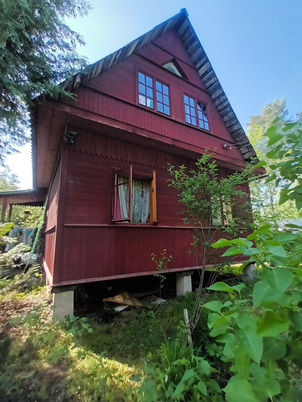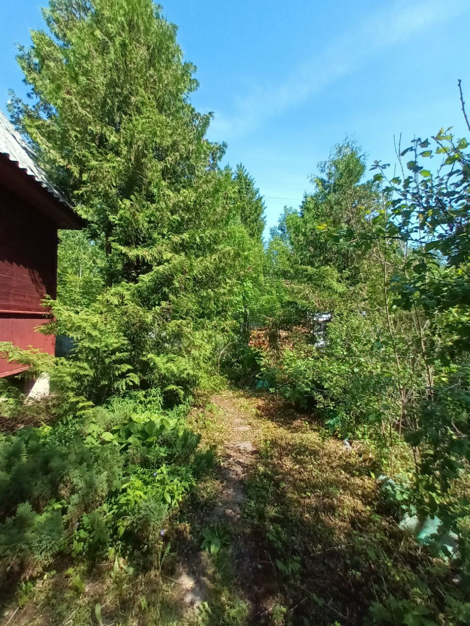 Участок разработан. Есть плодовые деревья, кусты смородины, крыжовник, можжевельник, туя.