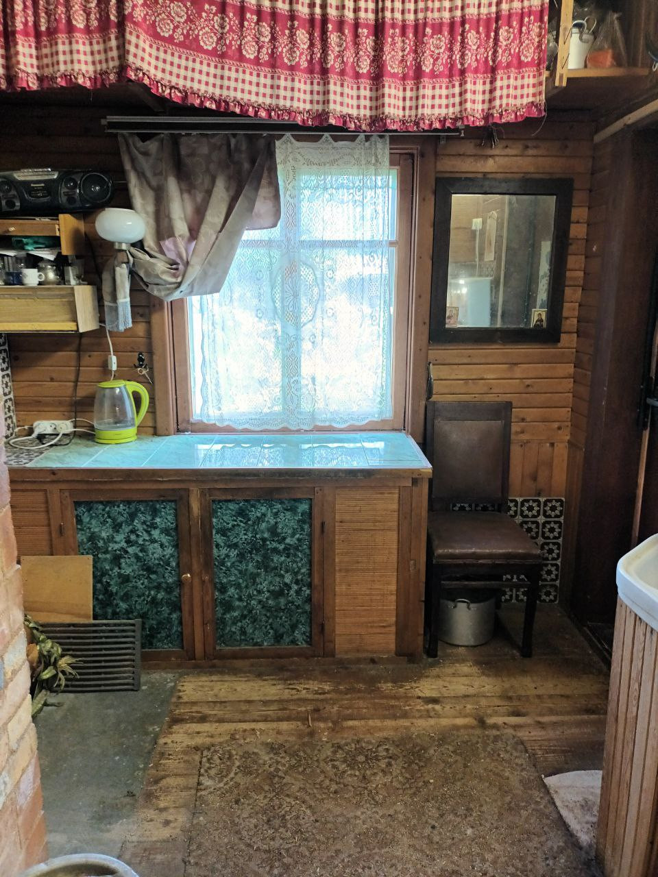 На 1 этаже находится закрытая веранда, кухня с русской печкой, просторная комната и спальня.