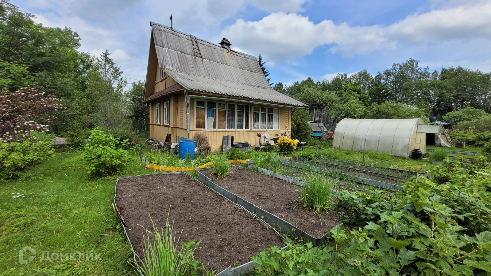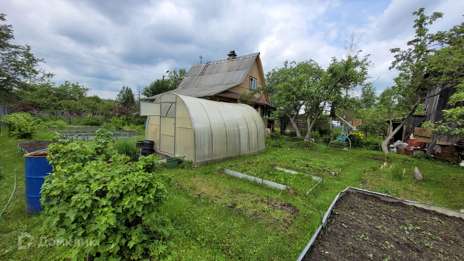 Земельный участок СУХОЙ, ровный, ОГОРОЖЕН сеткой рабица, РАЗРАБОТАН. На нем есть огород с ПЛОДОРОДНОЙ землей, ПАРНИК, плодовые деревья и кустарники, декоративные растения и цветы.