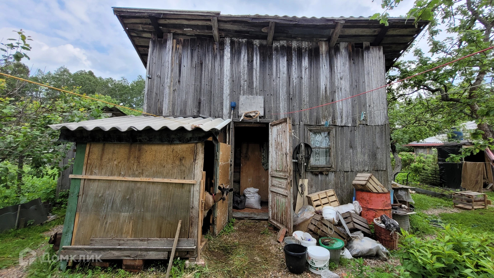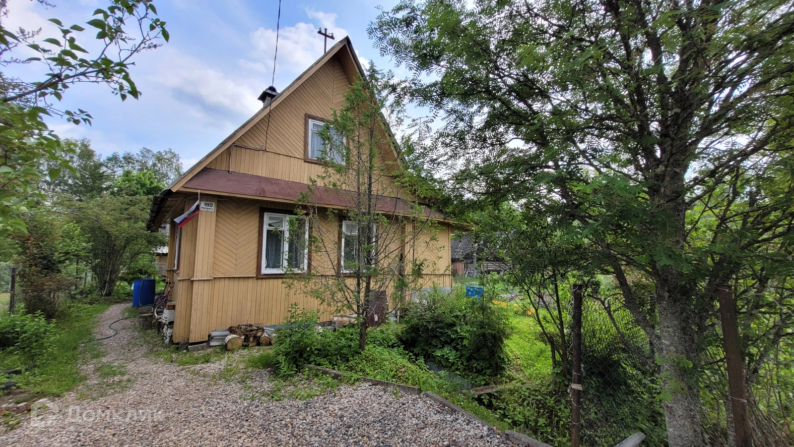 ДОМ построен из бревна и обшит вагонкой. На крыше -шифер. Новый электросчетчик.