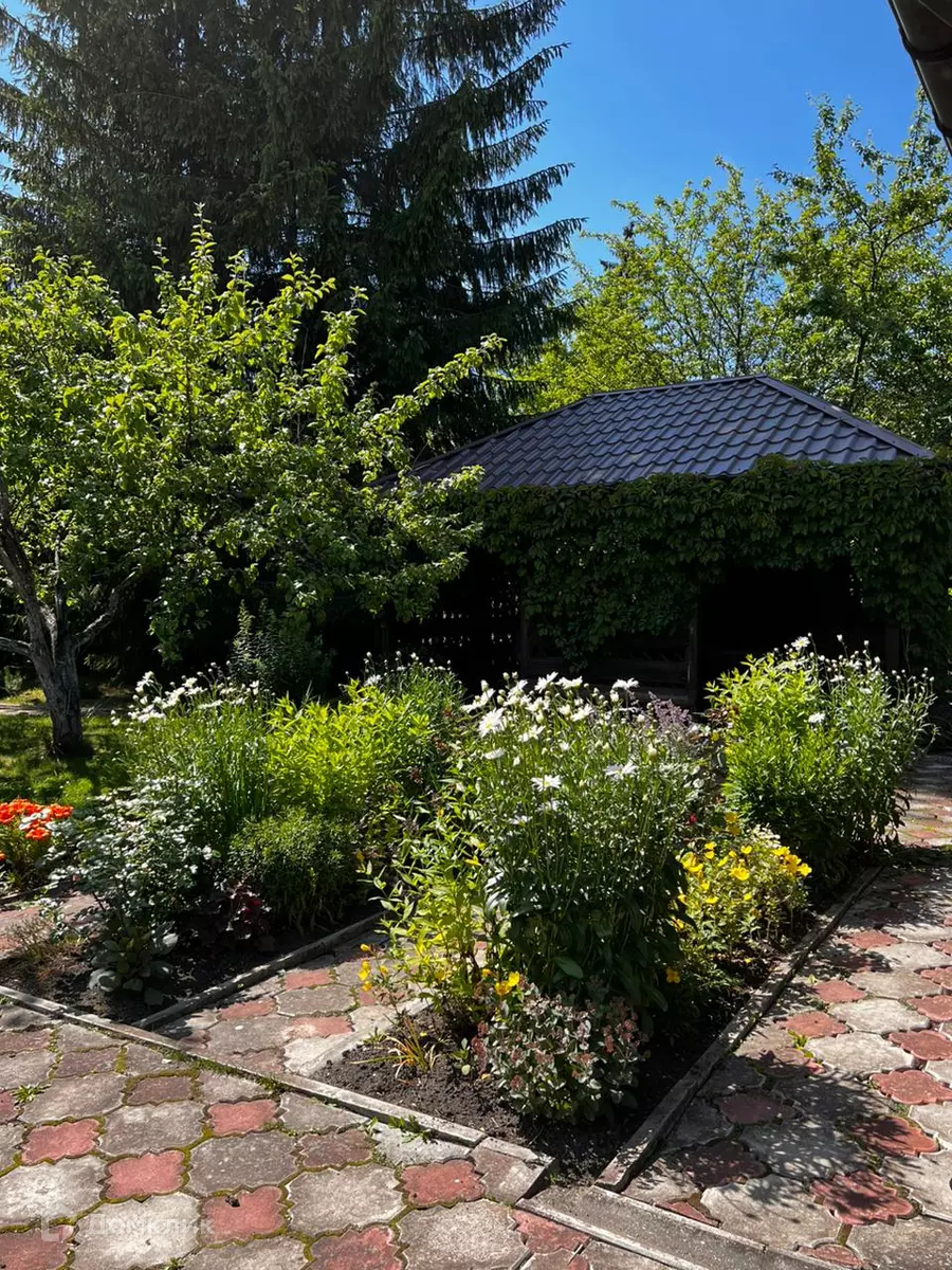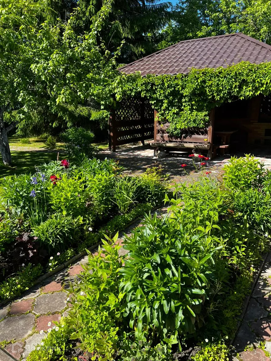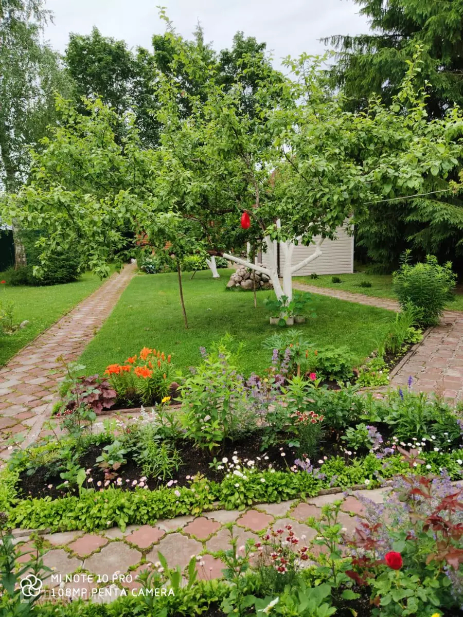 На участке: яблони, сливы, вишни, ягодные кусты, сделан французский огород, газоны, красивые цветники перед террасой и баней, огромное количество цветов, сделана шикарная зона барбекю. Проезд в садоводство через шлагбаум по карте или телефону.