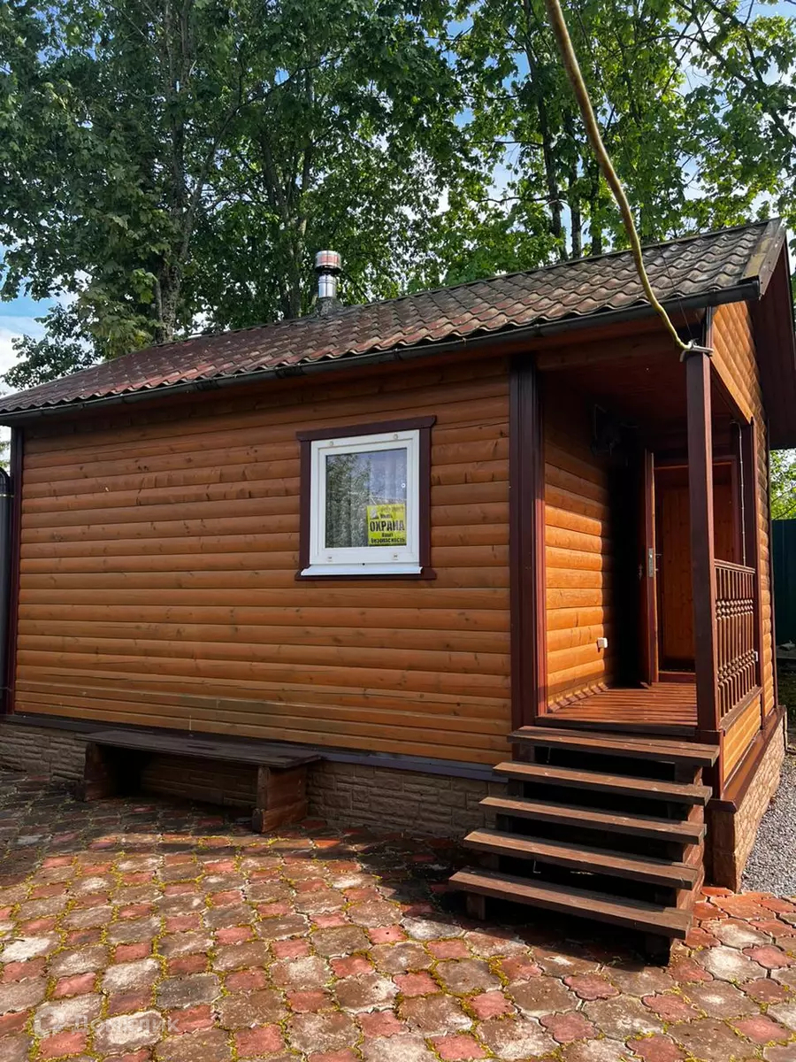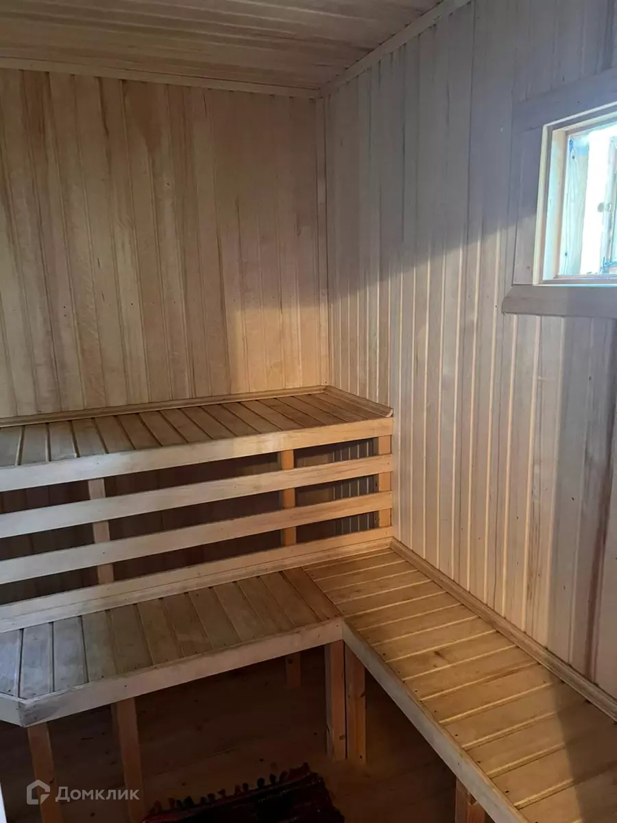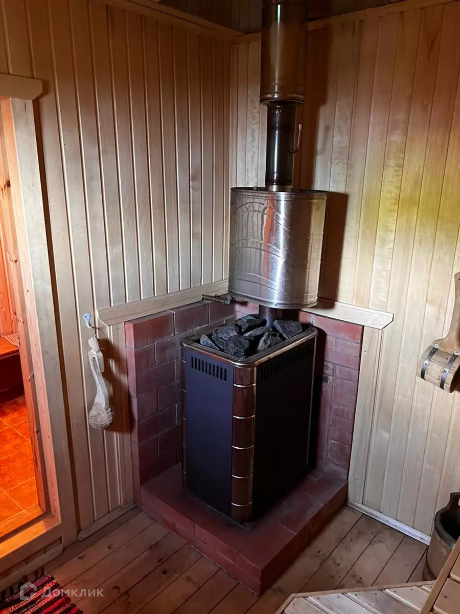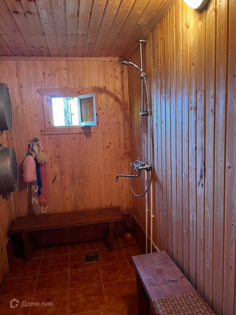 На участке вместительная баня 6x4 из бруса и обитая блок Хаусом ,покрыта немецкой металлочерепицей, с комнатой отдыха, парилкой и душевой, установлена печь c каменкой и бойлер
