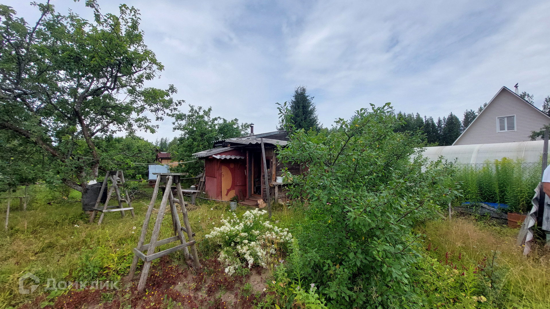 Участок разработан, с плодовыми деревьями и кустарниками, огорожен.