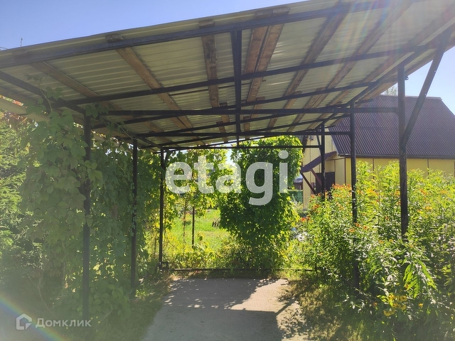 - На въезде на участок установлена бетонная плита , оборудован навес - под парковочное место для автомобиля.