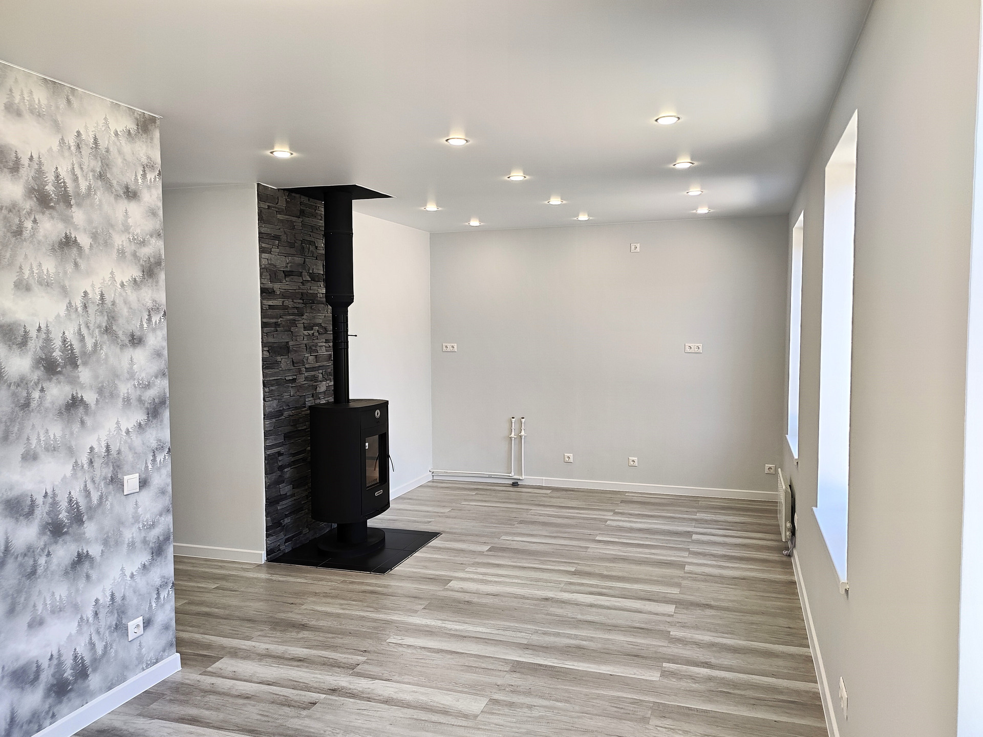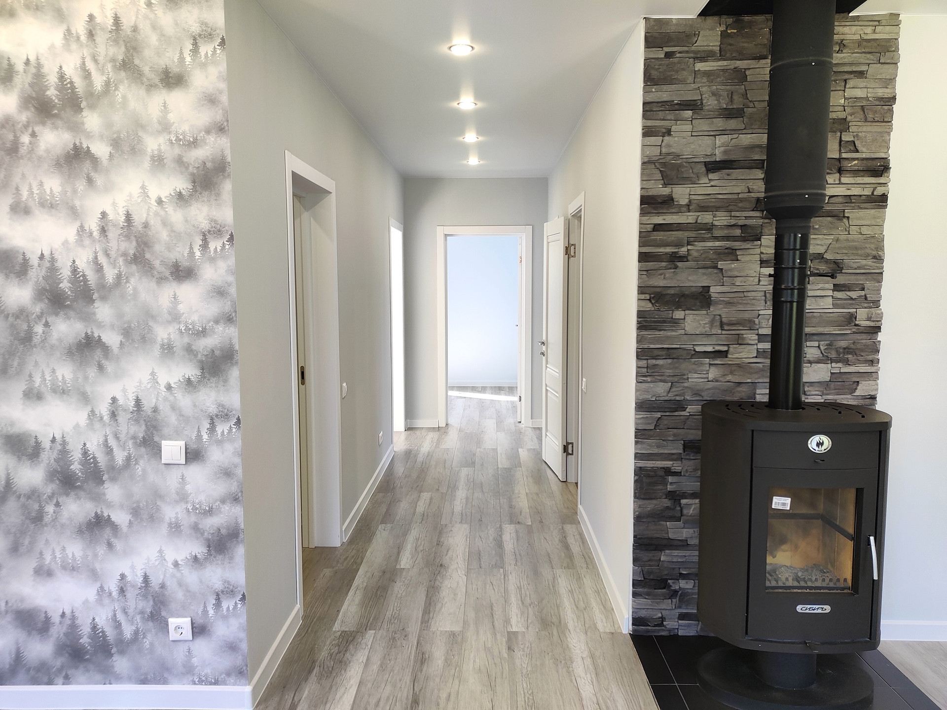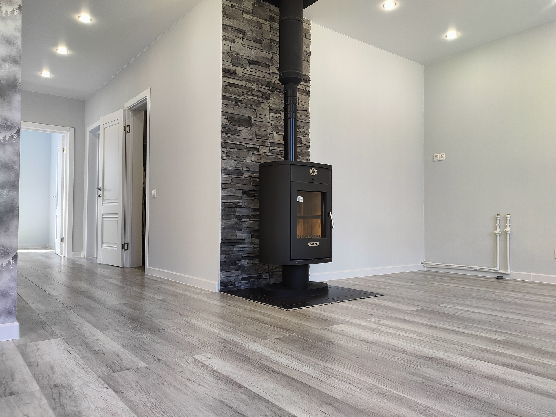 Отопление - электрические конвекторы ENSTO (Финляндия) + Печь-камин (дрова/пеллеты).