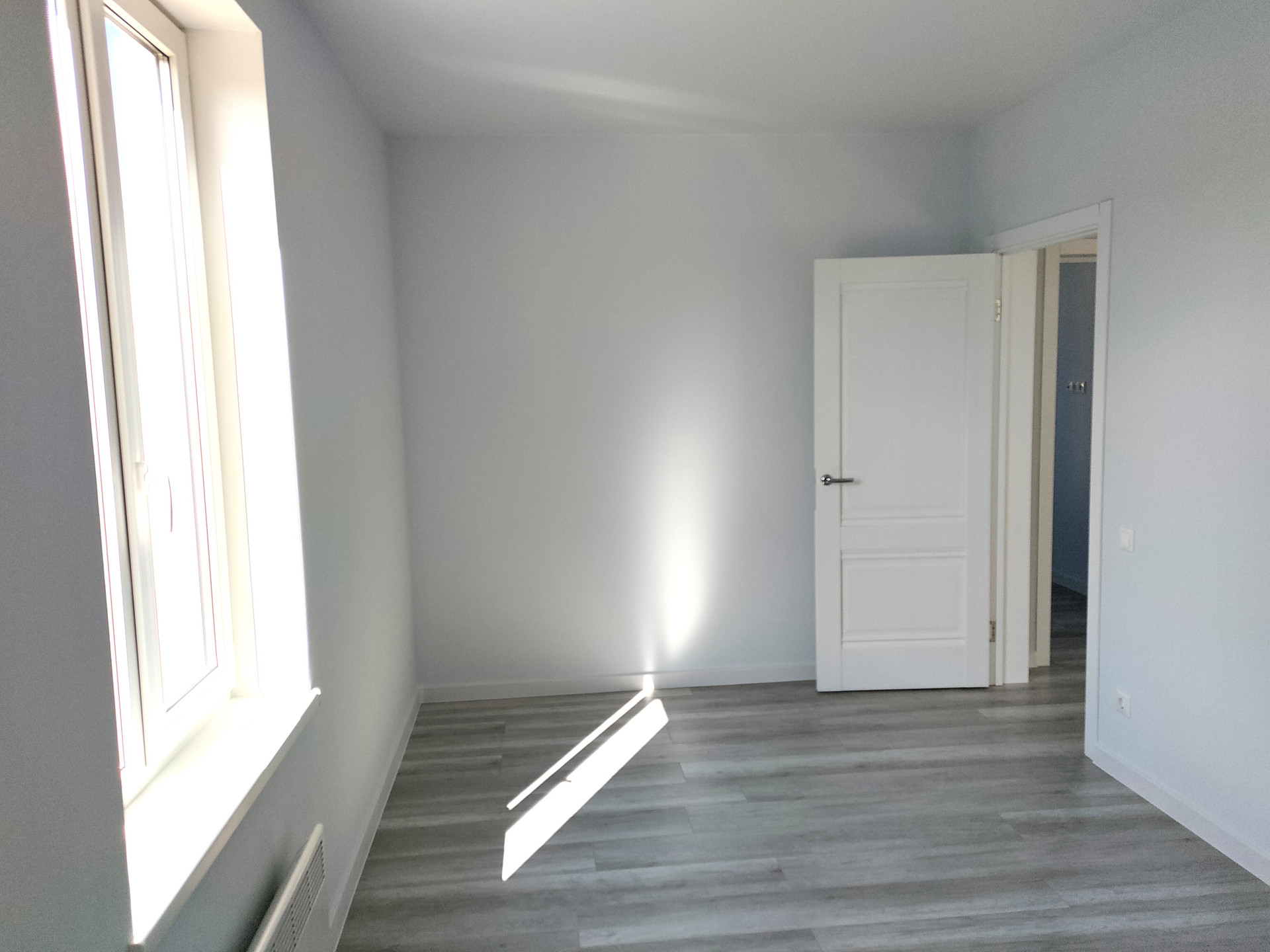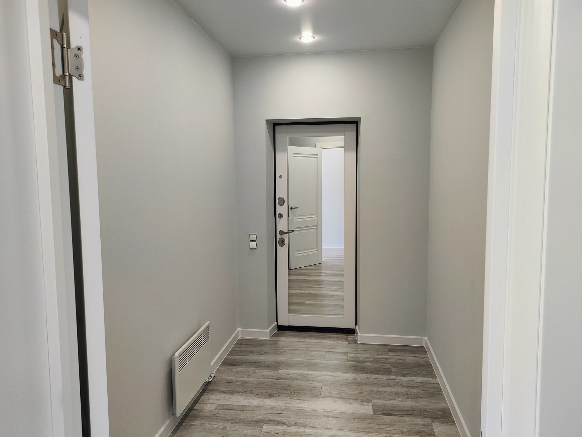 Хорошая входная металлическая дверь, пол - ламинат, стены - обои, санузел - керамическая плитка.
