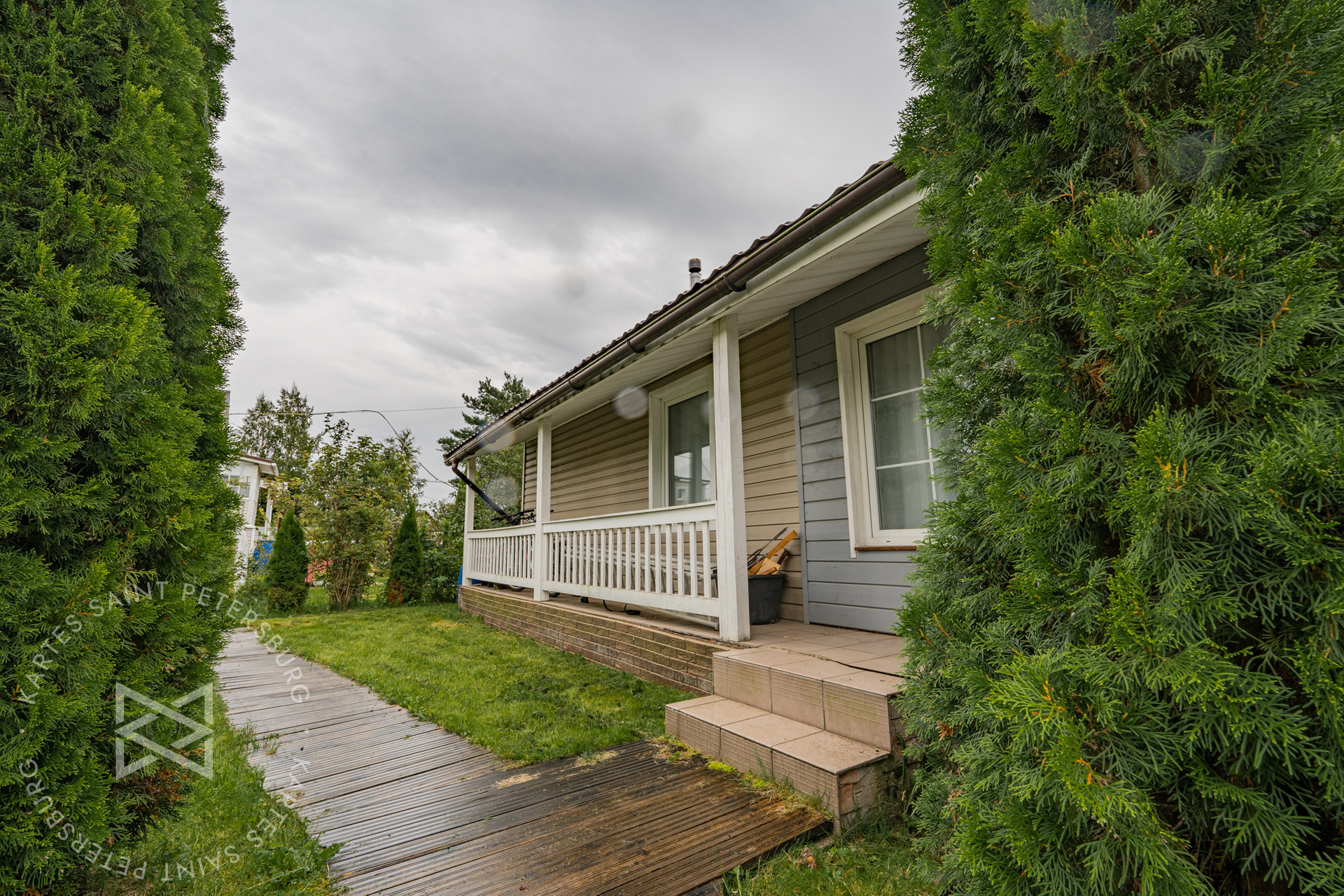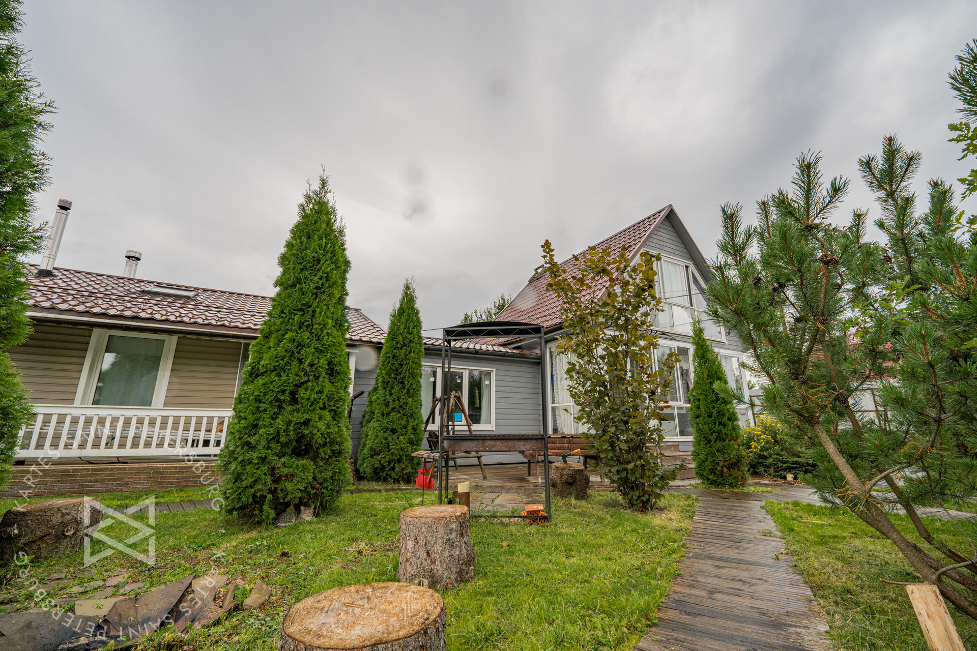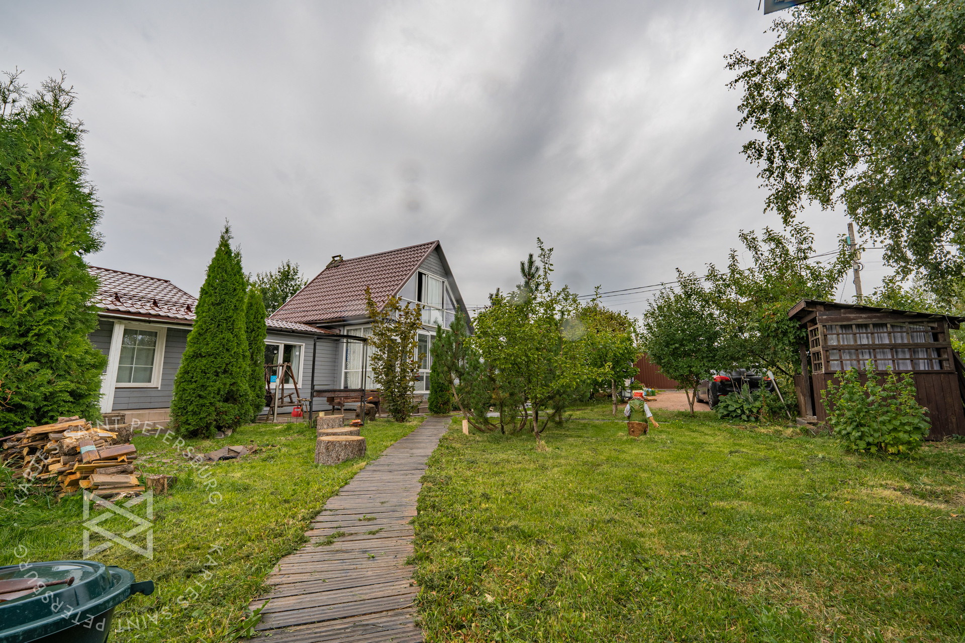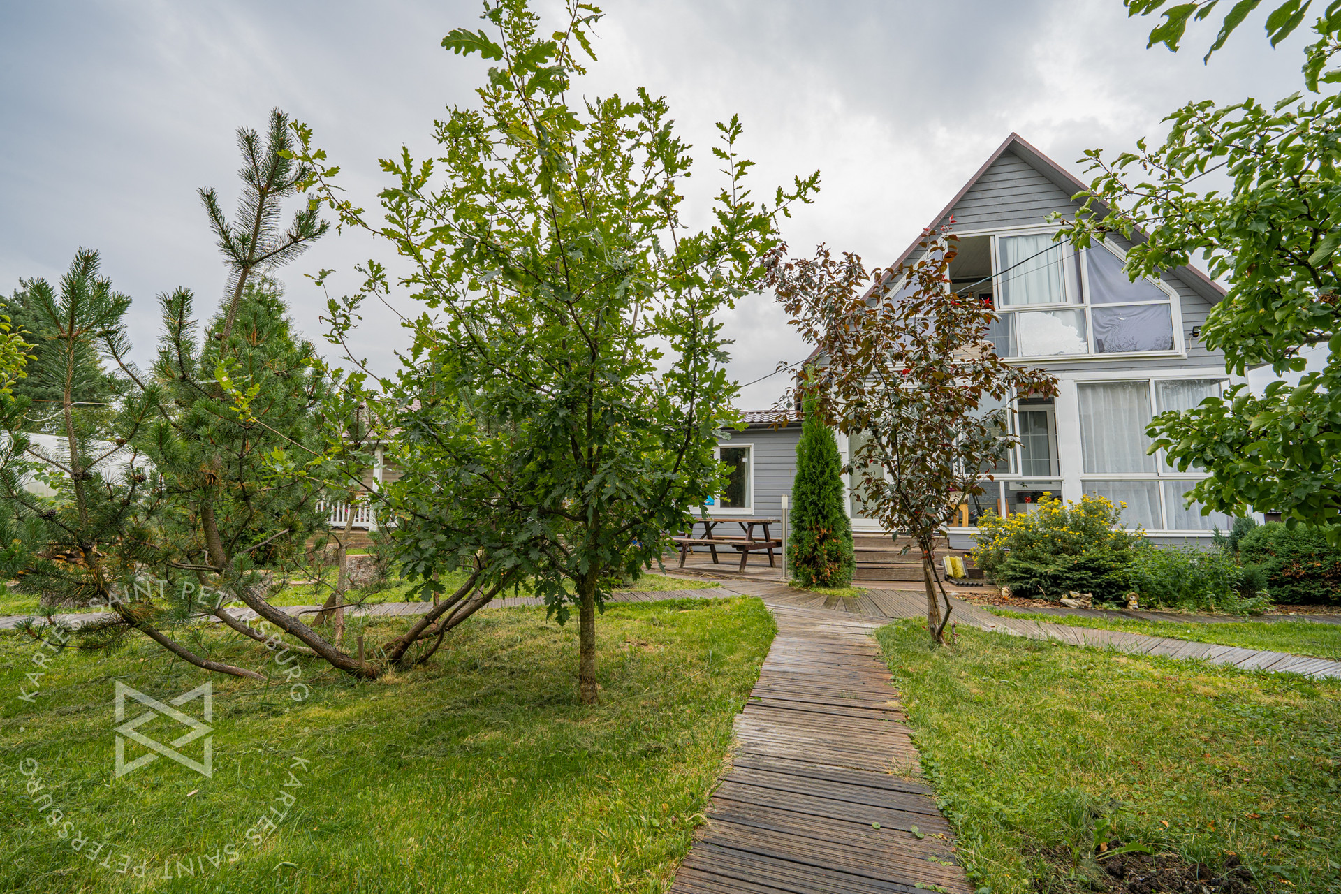 ✅Выполнены ландшафтные работы (высажены хвойные и лиственные растения, организованы прогулочные дорожки из экологически чистых материалов, по всему участку в идеальном состоянии газонная трава)