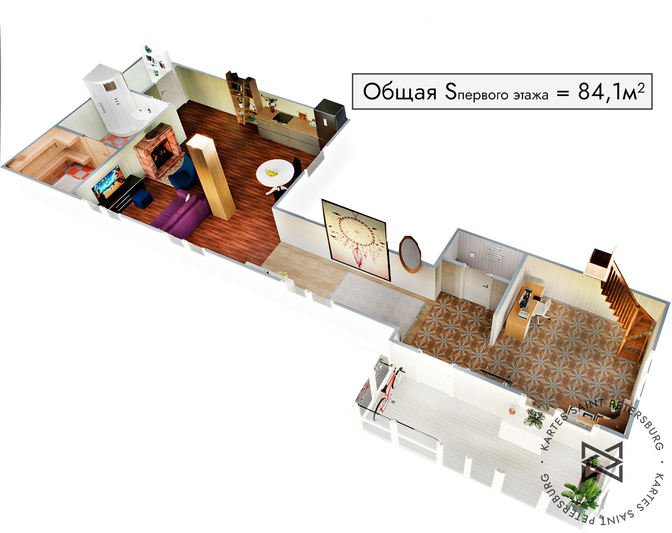 ✅Построен по каркасной технологии с утеплением 200 мм, на свайно-винтовом фундаменте