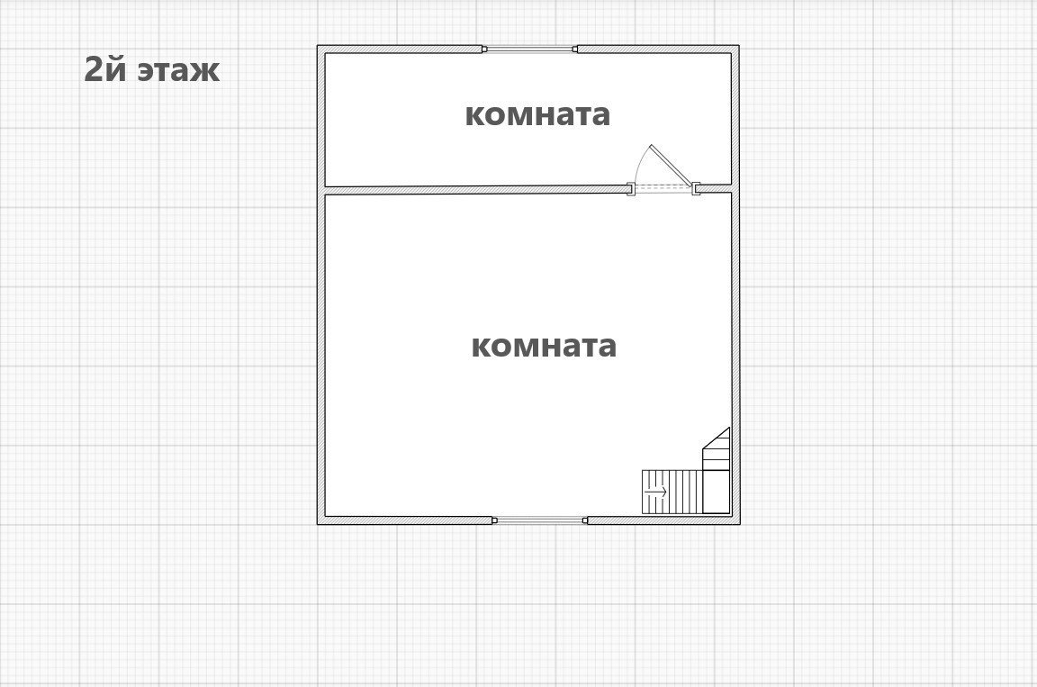 - 2й этаж – просторная комната, спальная комната