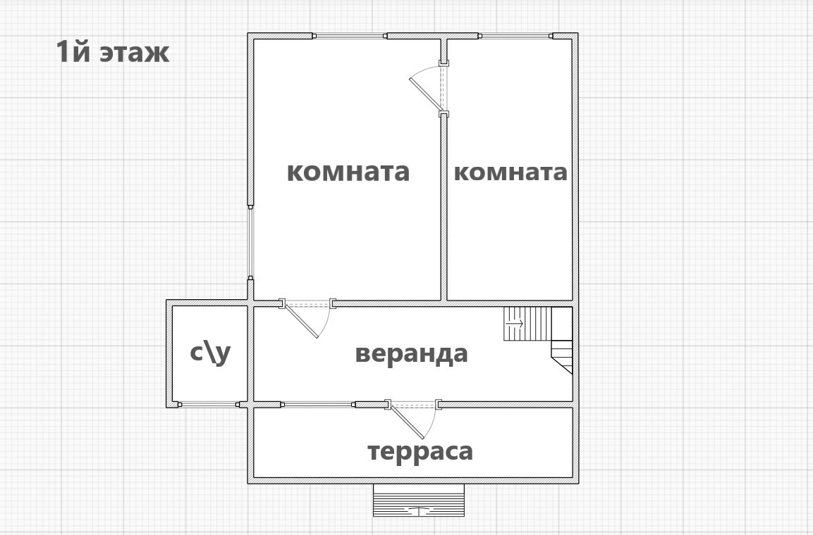 - 1й этаж - терраса, веранда, санузел, комната с печью, спальная комната