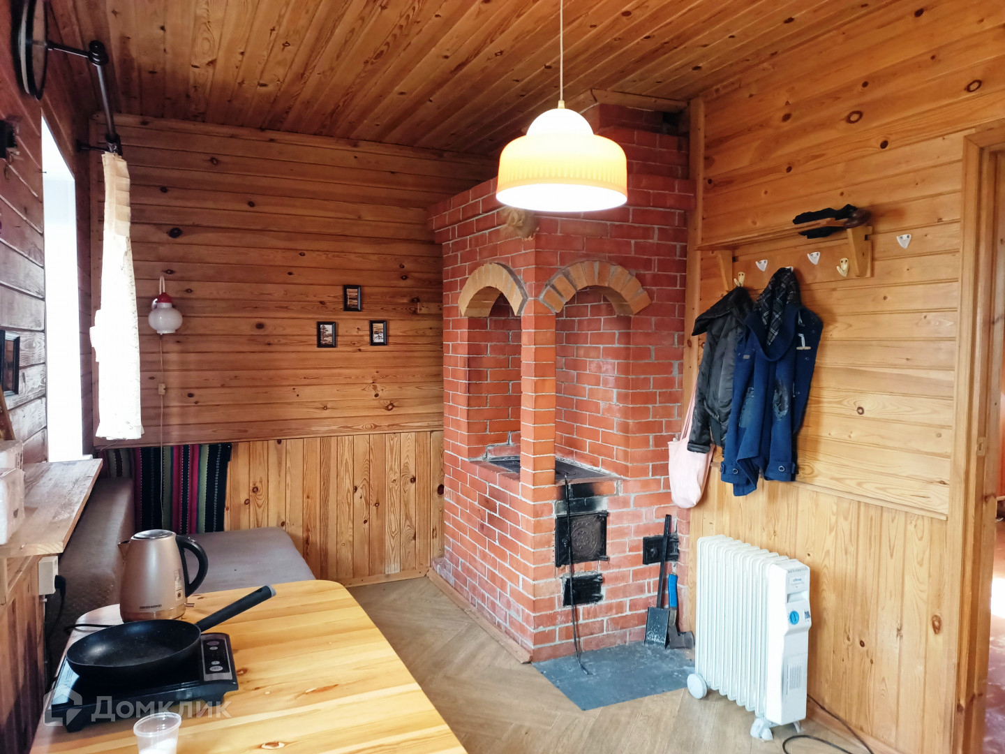 Первый этаж из кирпича, второй по каркасной технологии. Установлены стеклопакеты с ламинацией. Кухня – гостиная 16м2 и большая комната 20 м2 на первом этаже. На втором две комнаты по 14м2. Весь дом отапливается с помощью надежной печи. По правой стороне дома организован вместительный дровяник. В цокольном этаже организовано просторное место для хранения. Вода – колодец, заведена в баню. Электричество заведено.