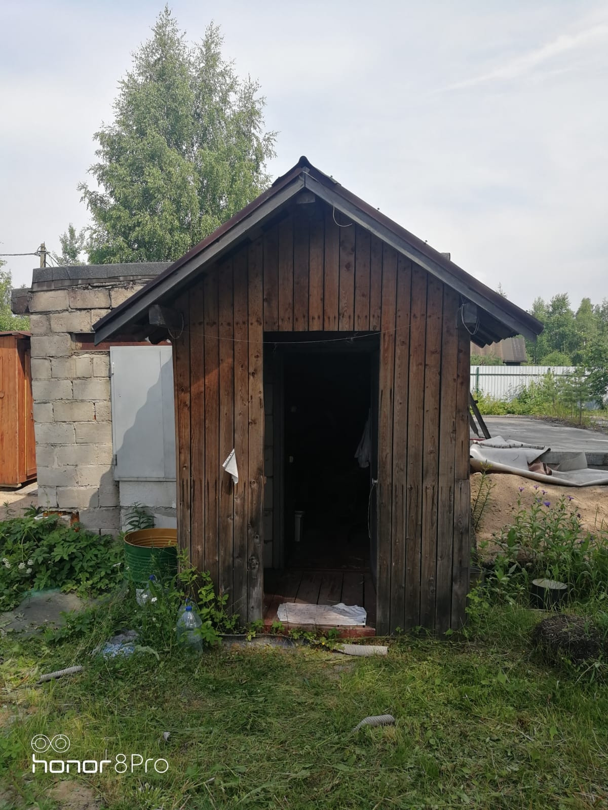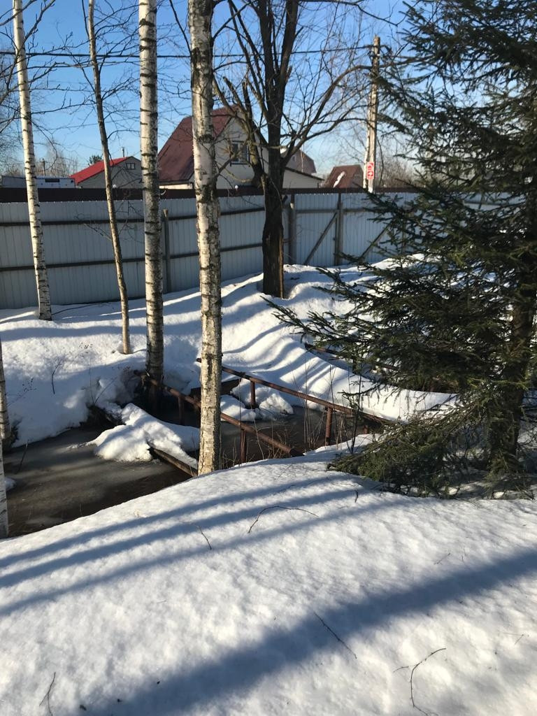 Отличный участок, 15 мин до КАД. Эл-во 15 Кв. Туалет с скептиком на улице, участок огорожен, посадки. Домик 20кв М.