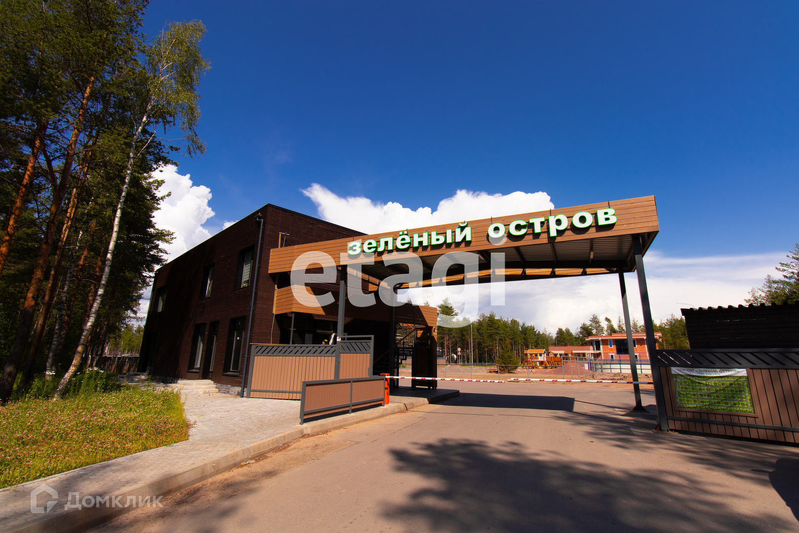 - охраняемая территория, въезд на территорию посёлка через шлагбаум