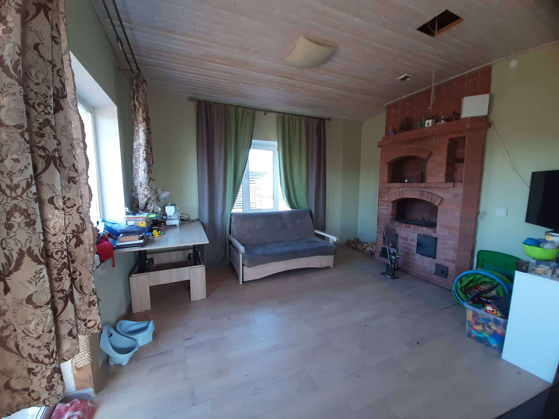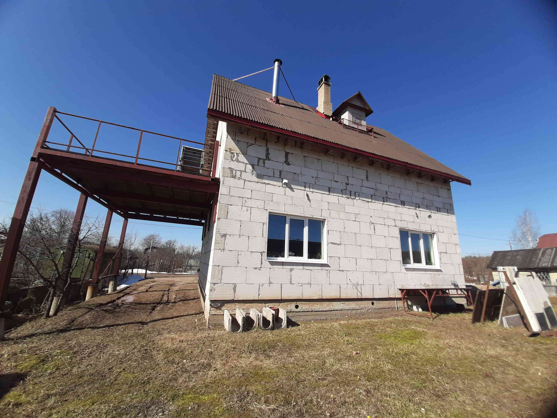 Продаётся дом на участке 20 соток. Расположен в 3 км от города. До остановки автобуса 7 мин. пешком (Маршруты 6, 44м, 26). Рядом расположен лес, можно собирать ягоды и грибы. Дом построен из газобетона в два слоя, общая толщина стен 350мм. Отлично подойдёт для большой семьи, которая предпочитает городской уют и деревенское спокойствие. Первый этаж включает в себя просторную кухню-гостиную с газовой плитой (баллон на улице в сейфе), с гранитными столешницами и с печкой типа "шведка" от известного новгородского печника, на счету которого больше трёхсот печей и каминов. Так же санузел, большая спальня, тамбур и лестничная площадка-прихожая; на втором этаже расположились две небольшие спальни, санузел, и очажная комната с открытым камином типа "костёр" и с выходом на огромный балкон. Третий этаж является мансардным, откуда организаван выход на крышу, для обслуживания труб; так же обустроена раковина с гранитной столешницей. К дому подведено электричество с двух разных линий, что исключает возможность остаться без света, оба по 15кВт.; скважина 22метра, канализация ЛОС "Биотанк" с принудительным сбросом. Вся разводка по дому выполнена (электричества, водопровода и канализации), сделана частичная отделка, дом полностью жилой (семья из 4 человек проживают круглогодично уже 3 года с постоянной пропиской). Участок поднят, но не распланирован полностью; организовано два заезда на участок: для личного и грузового транспорта. Имеется домик для хоз нужд и дровяник. Скважина оборудована кессоном, что исключает затопление жилого помещения в случае аварийных ситуаций. В планах было сделать террасу вокруг дома, на террасе летнюю кухню и котельную.