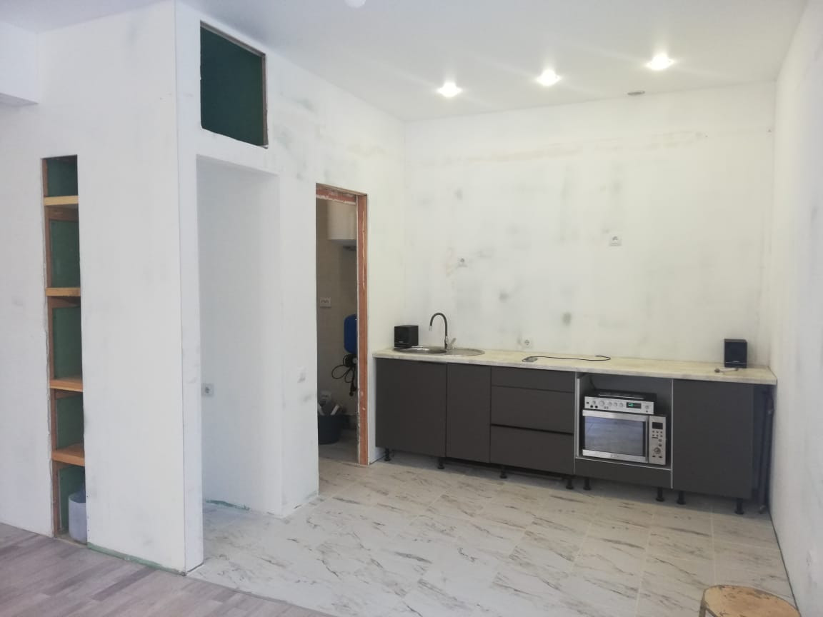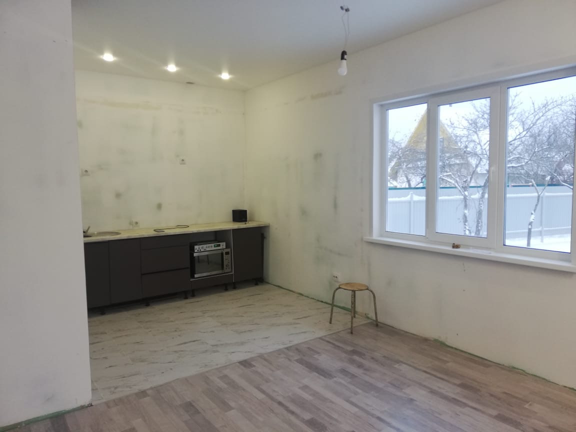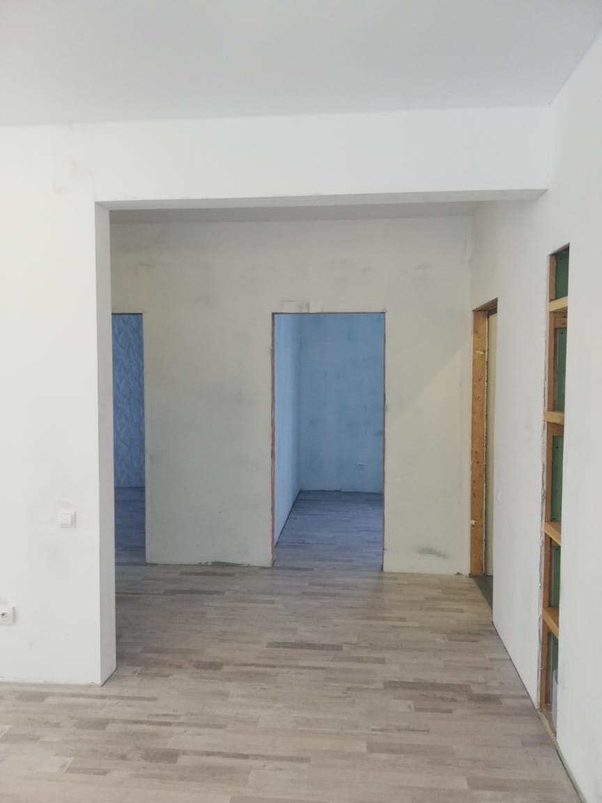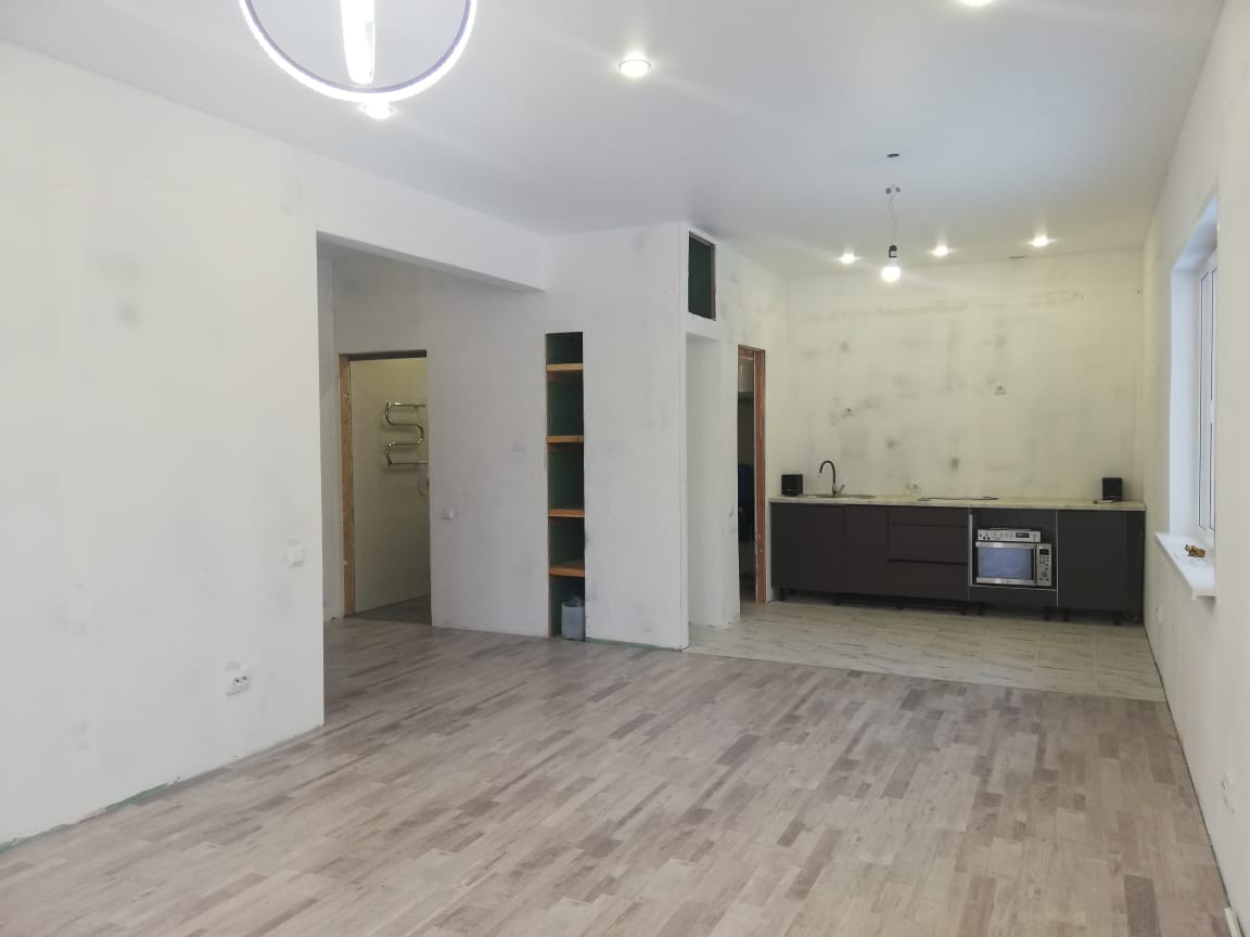 Полностью чистовая отделка, осталось только финишное покрытие стен.