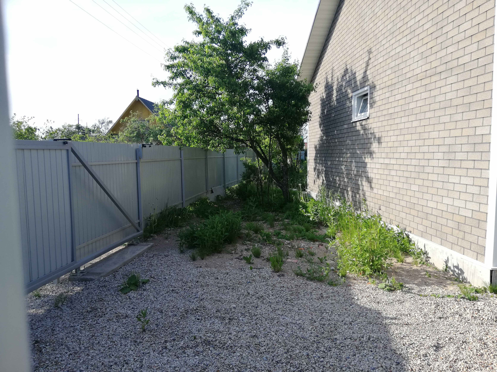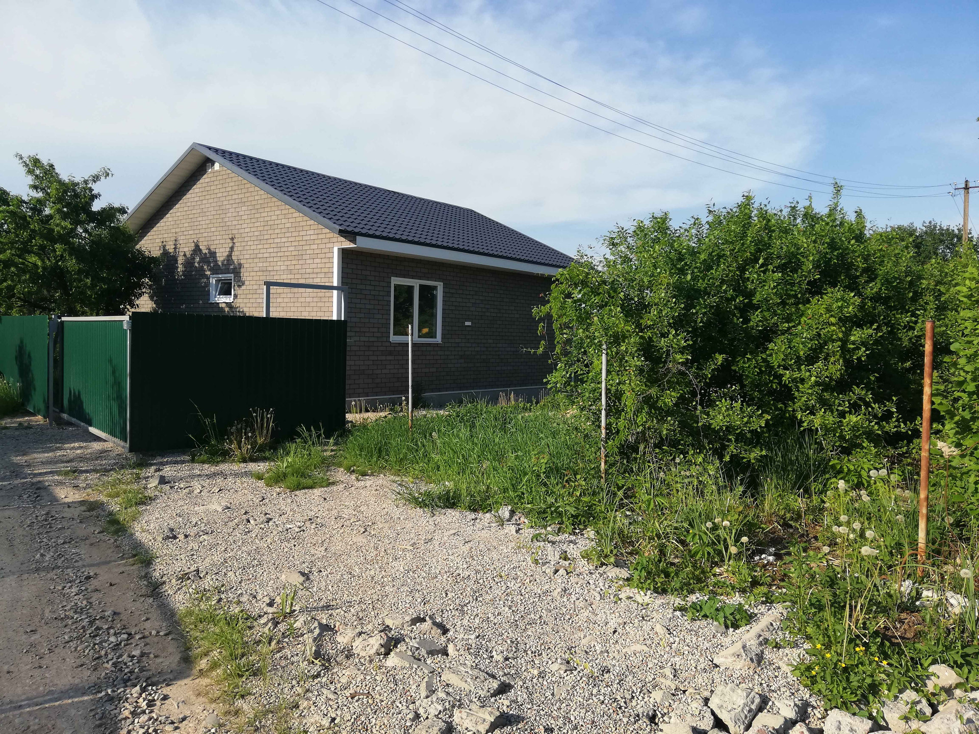 Участок высокий, абсолютно сухой. Территория обнесена забором, откатные ворота.