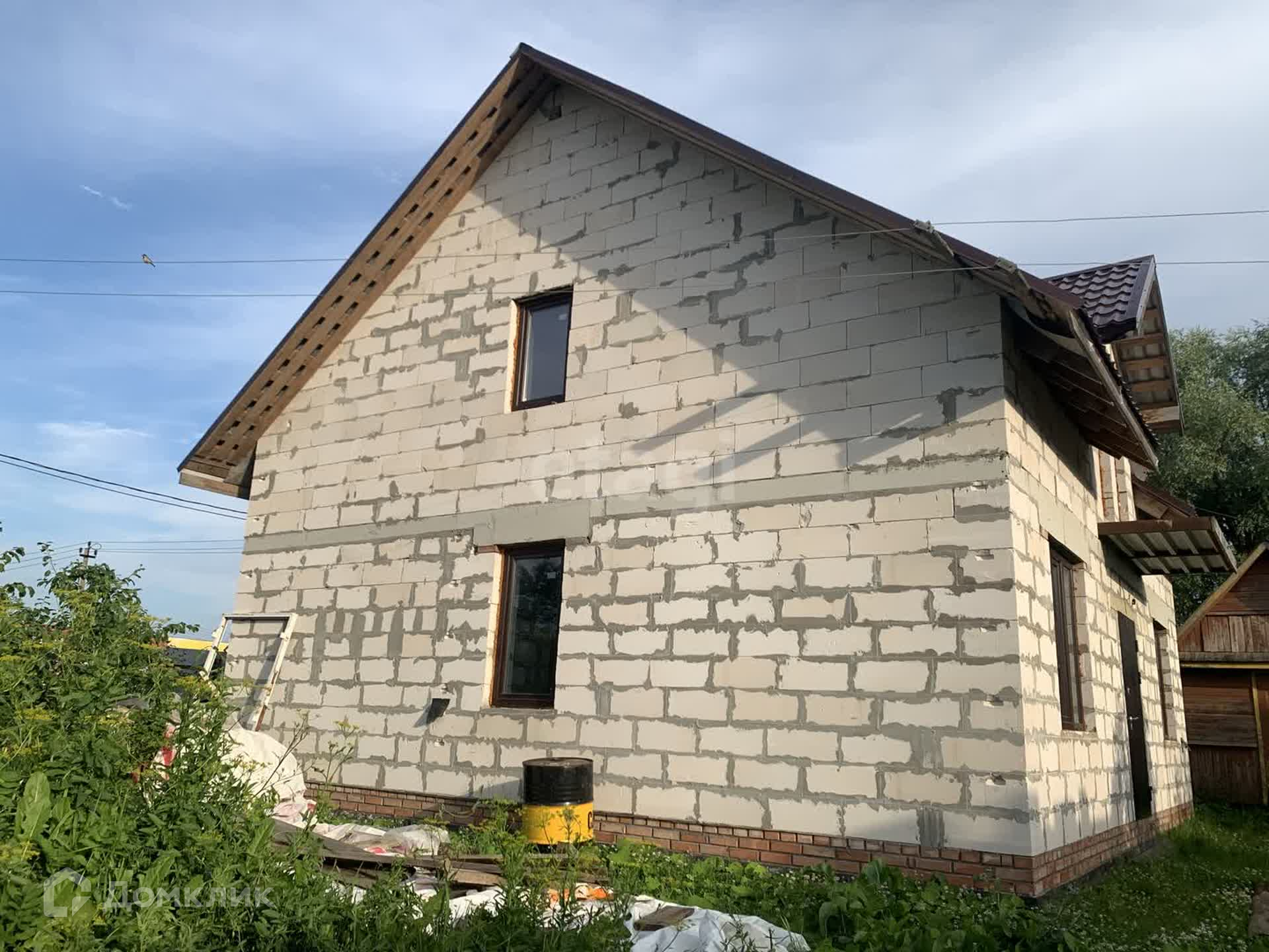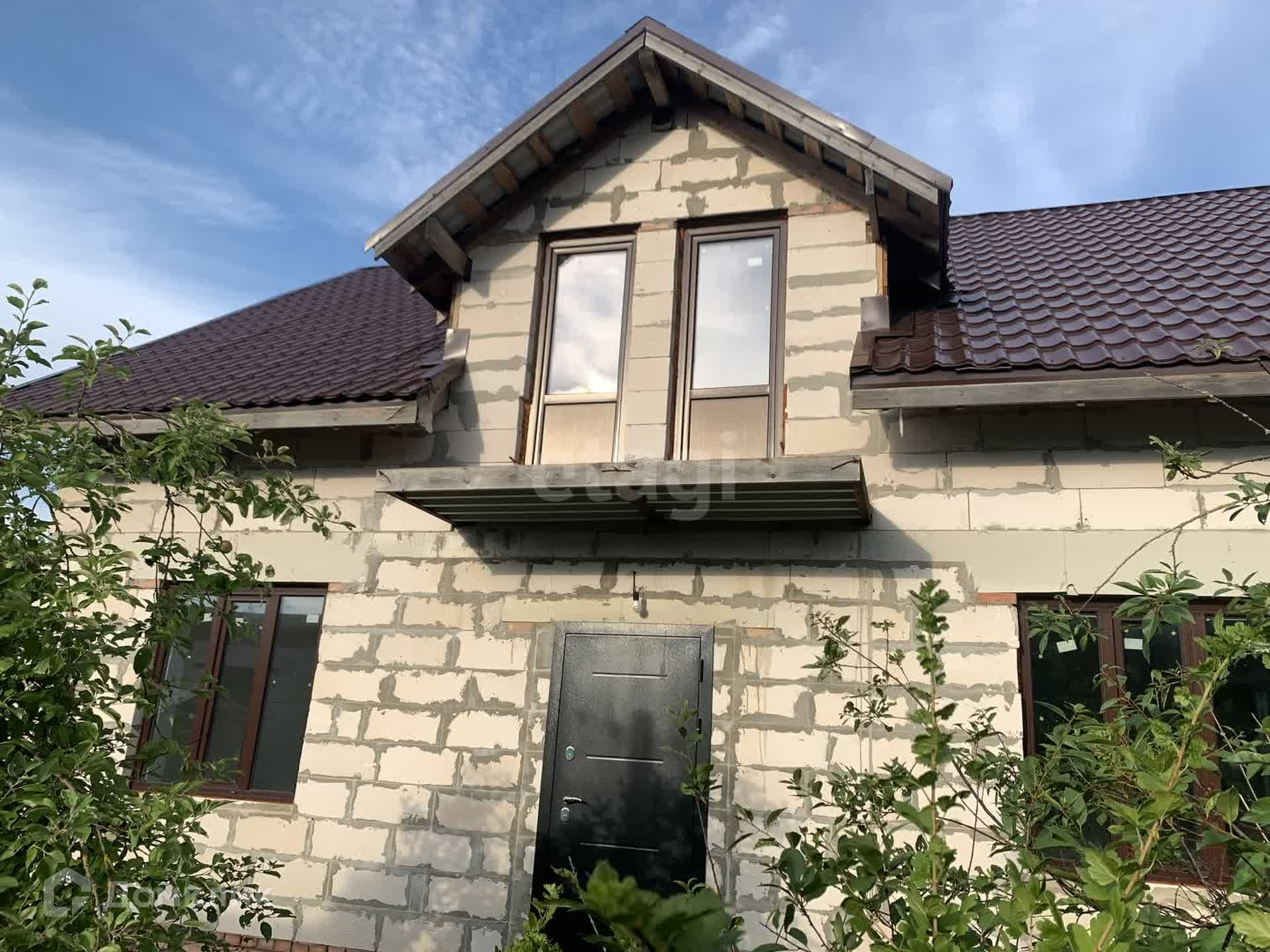 Построен из газобетонных блоков толщиной 400мм, ленточный фундамент по периметру и монолитная бетонная плита. Перекрытия - бетонные, крыша - металлочерепица, окна - двухкамерные. Выносы под балкон с двух сторон дома. Подведенная мощность - 15 кВт. Разводка по дому, сделана подготовка трубами для подведения воды и канализации.