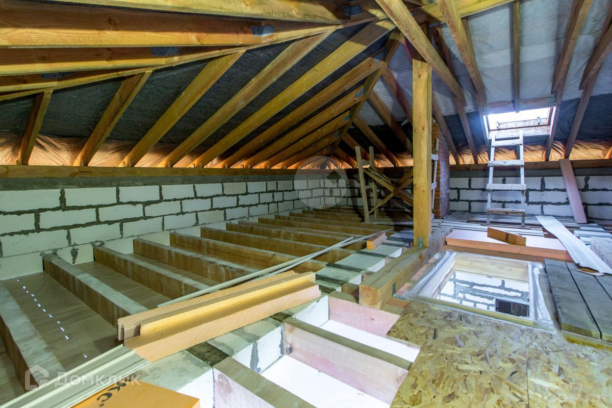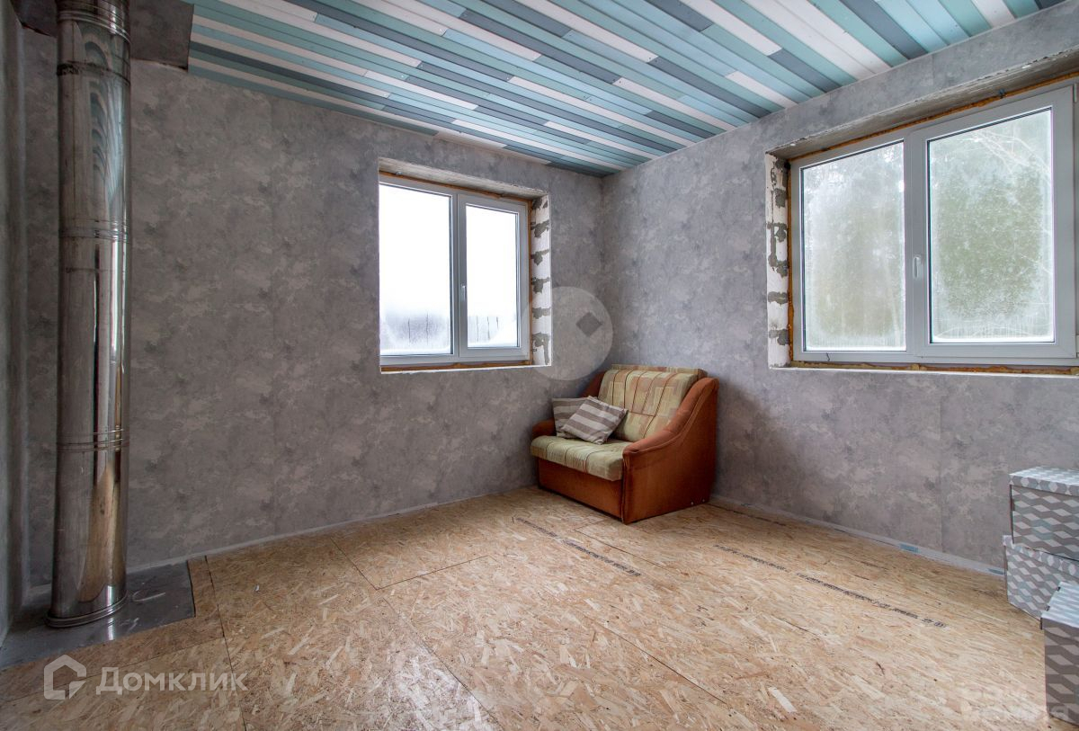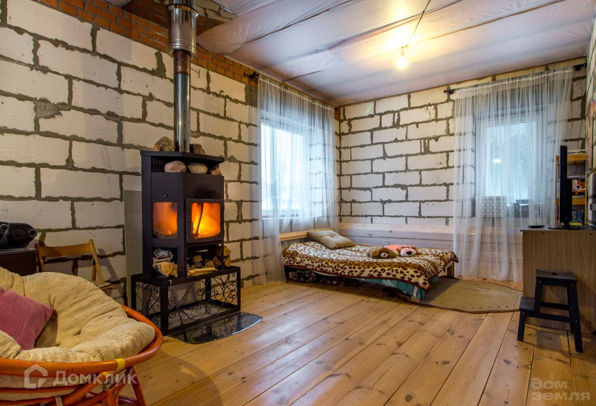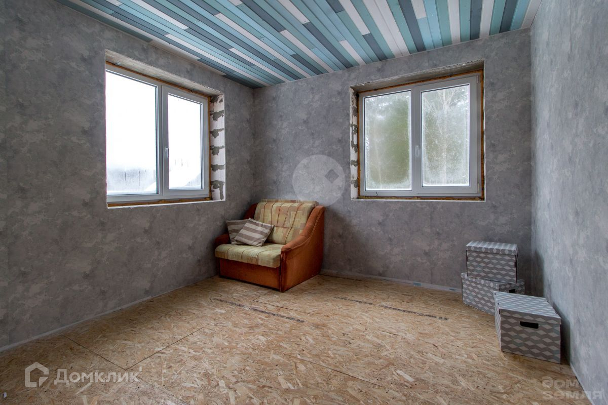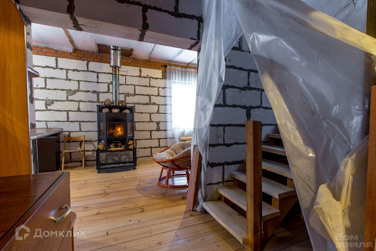 В доме полноценно 2 жилых этажа. На первом этаже расположена прихожая, бойлерная, кладовка - гардеробная, просторная кухня-гостиная с камином Енисей (длительного горения 11 кВт). На первом этаже настелен чистовой пол и обшит потолок вагонкой. На втором этаже, куда ведет удобная деревянная лестница с большим панорамным окном, 4 спальни и место под санузел. В двух из четырех спален почти закончен ремонт (обшит потолок вагонкой и настелен чистовой пол, стены оштукатурены и поклеены обои). В двух других настелен черновой пол и обшиты потолки вагонкой. Стены по всему дому готовы под финишную штукатурку или поклейку обоями. Коммуникации: