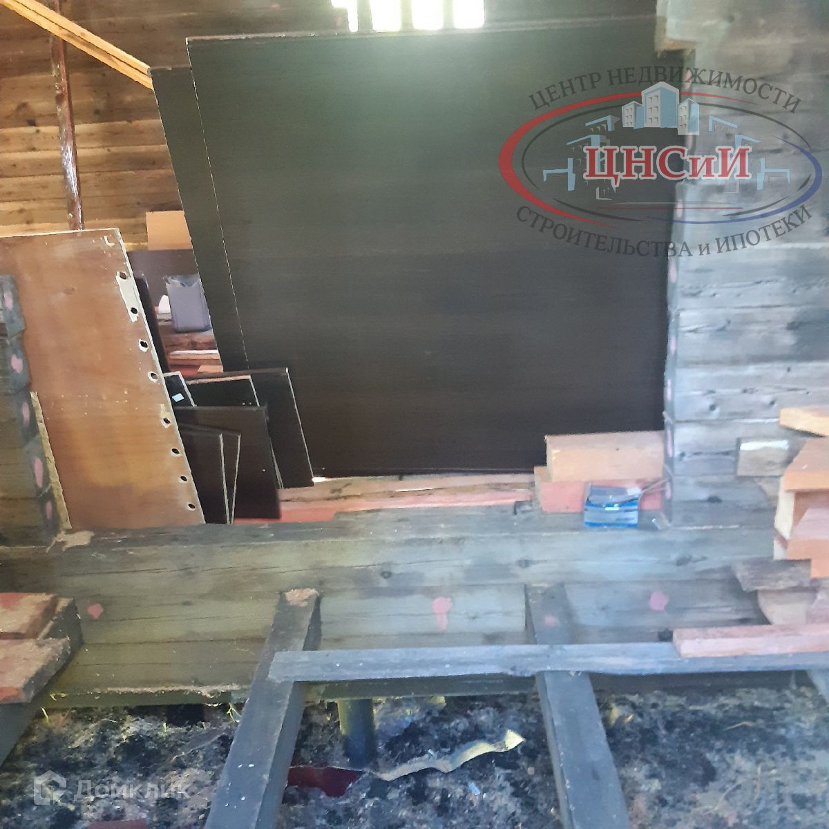 Внутри положены лаги и балки, разделяющие этажи и для пола. Есть где разгуляться фантазии для новых хозяев.