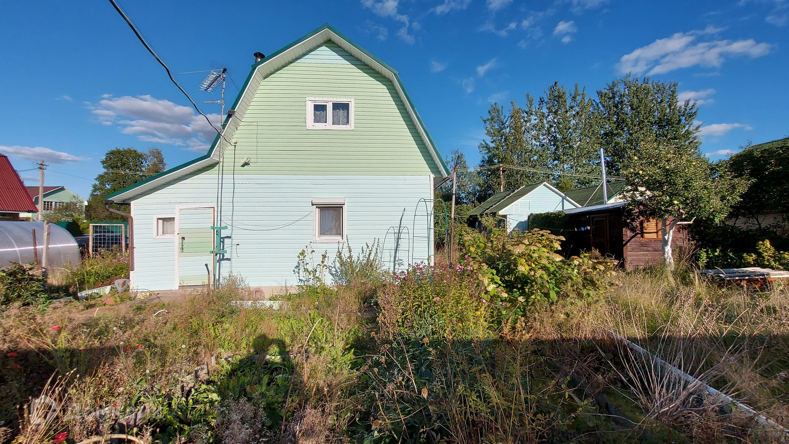 Дом и остальные постройки подключены к электричеству. На участке летний водопровод с водой для полива.