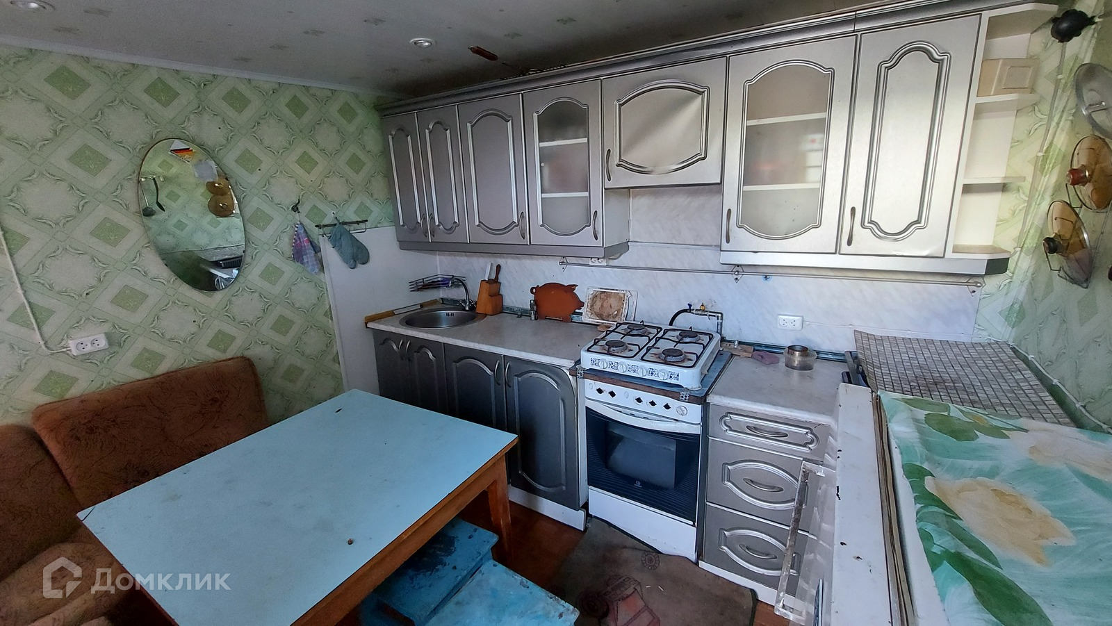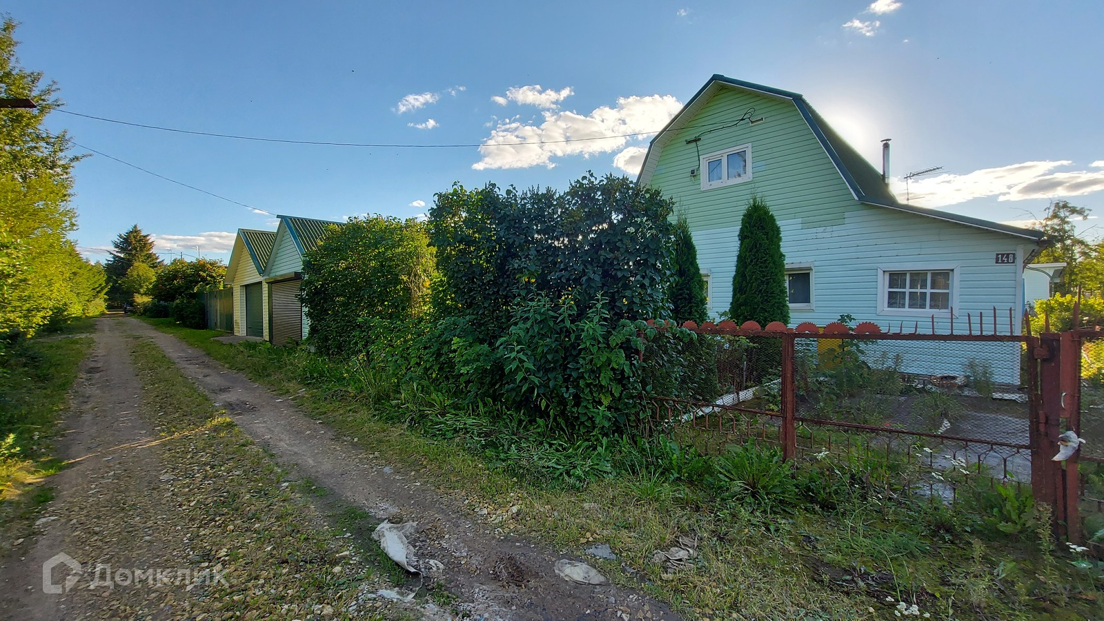 На участке 6 соток (правильной формы) расположены: летний дом (прихожая, кухня, 2 комнаты и погреб на первом этаже; спальня на 2 этаже), гараж с чердаком, баня, летняя кухня с хозяйственным блоком, туалет, беседка с обеденным столом, 2 теплицы.