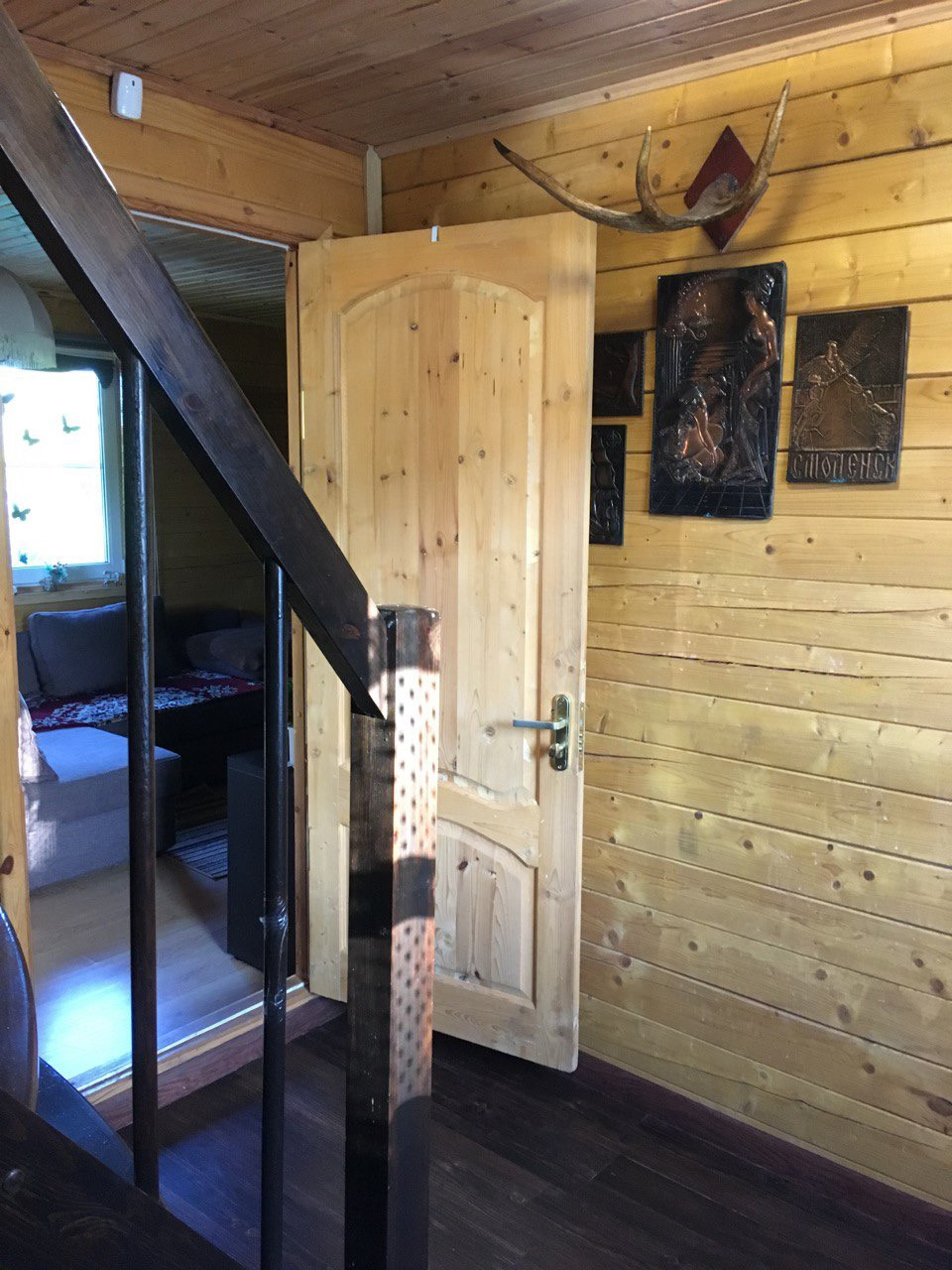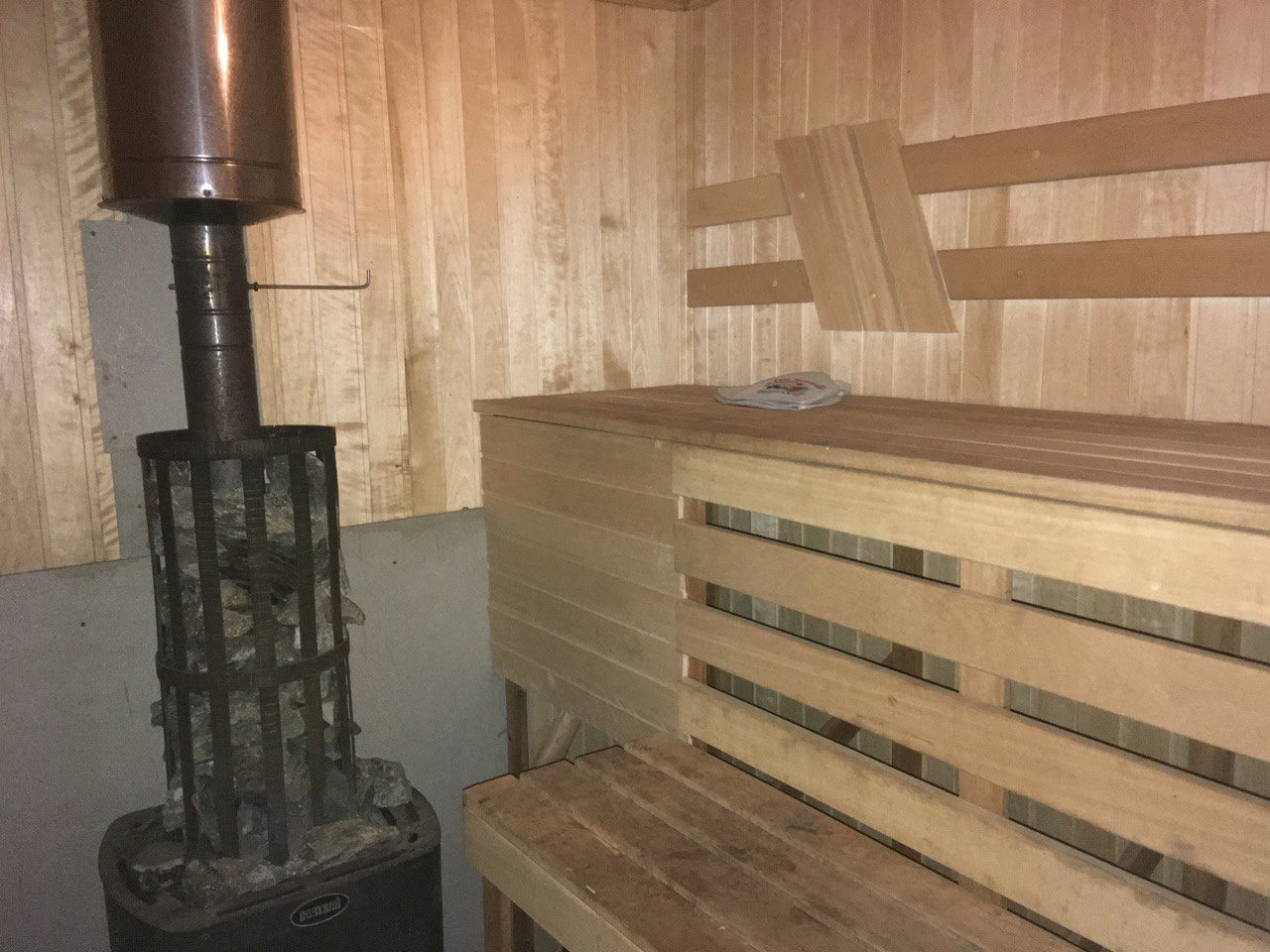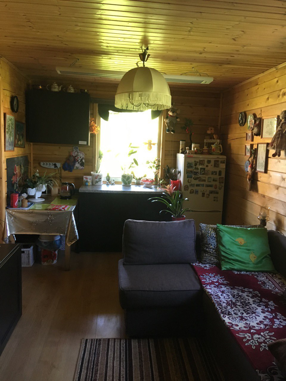 коридор, ванная комната + туалет, сауна и гостиная… с печью со стеклянной дверцей (в дождливую погоду или зимними вечерами заменяет камин).