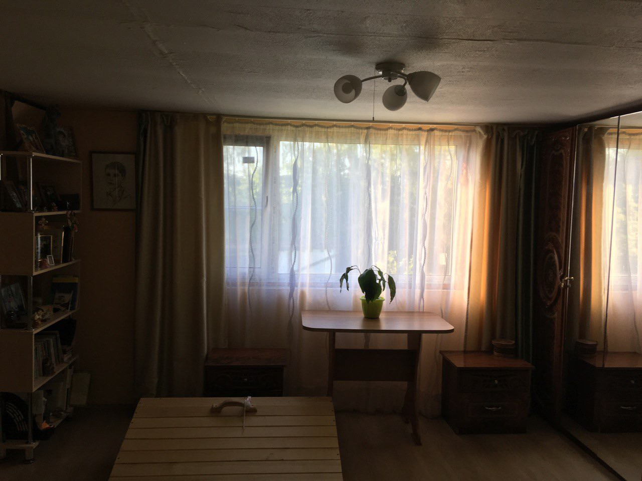 одна большая комната + отделанный чердак).