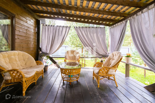 К дому пристроена крытая, современная ТЕРРАСА из бруса , где можно проводить время с друзьями, отдыхать за чашечкой кофе и наслаждаться пением птиц, так как на самом участке и вокруг имеется достаточное количество деревьев и живописная местность!