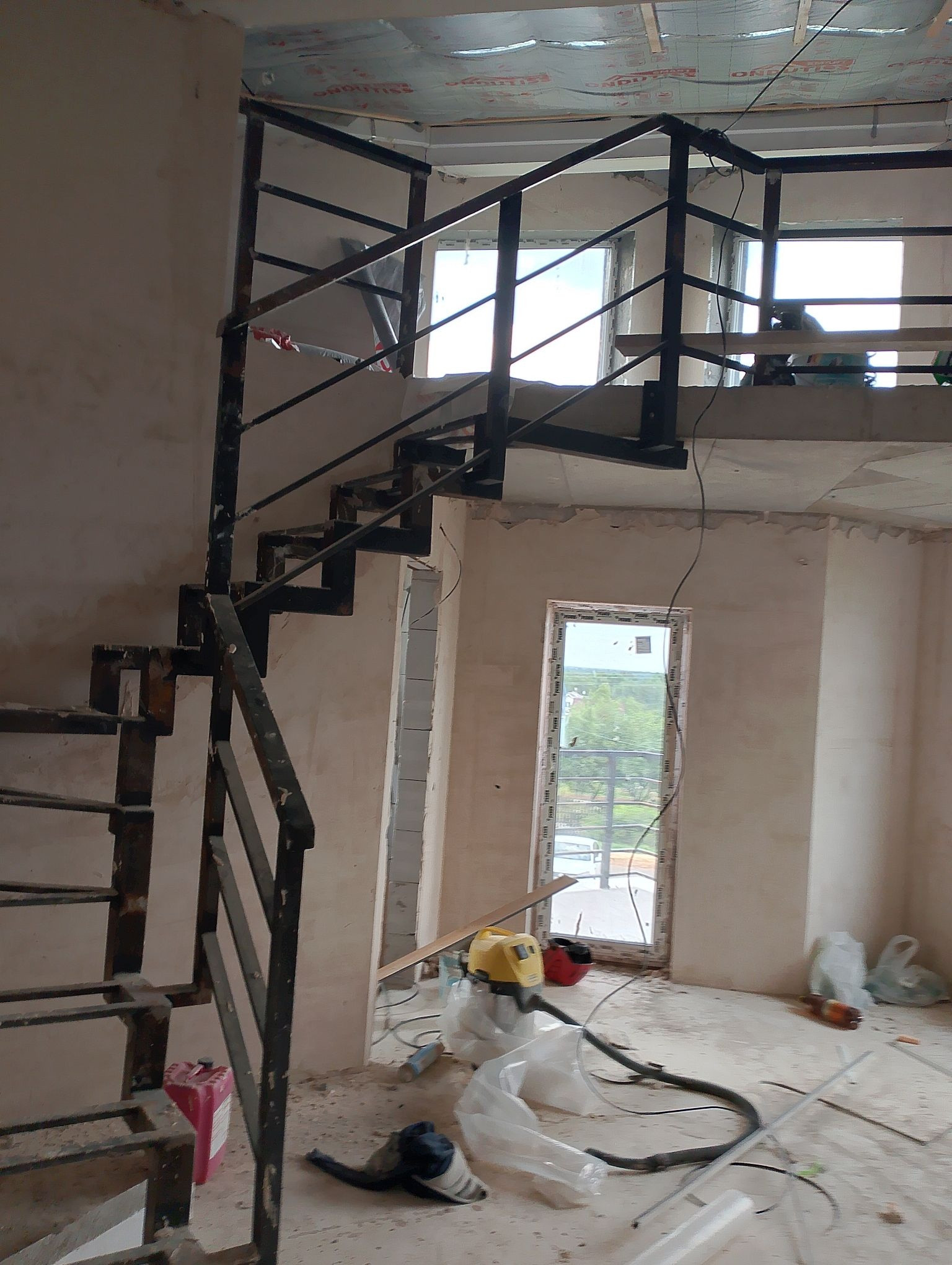Лестница 1я бетонная и 2я стальная.