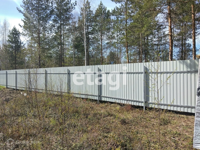 Сухой ровный участок 6 соток огорожен забором из профлиста.