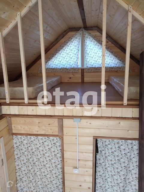 В доме спальня, кухня-гостиная, веранда, также на втором ярусе обустроены два спальных места, которые при желании можно использовать для хранения вещей.