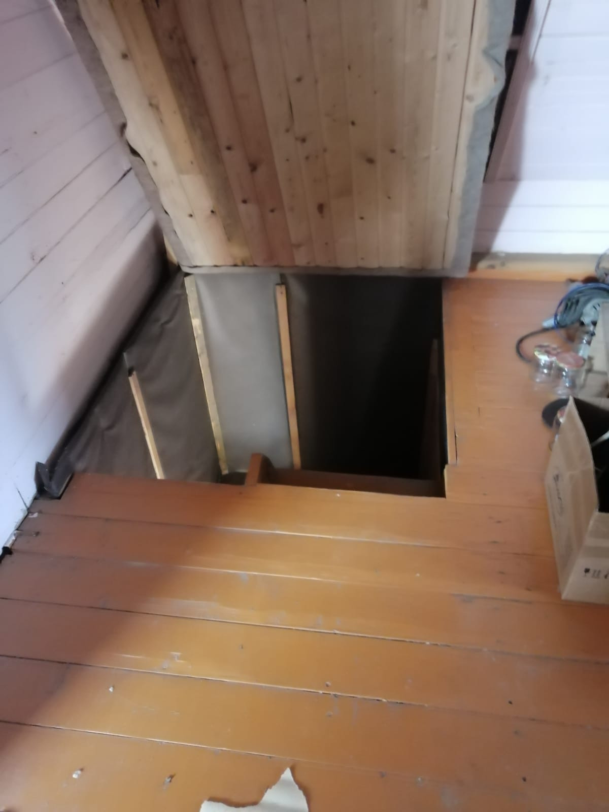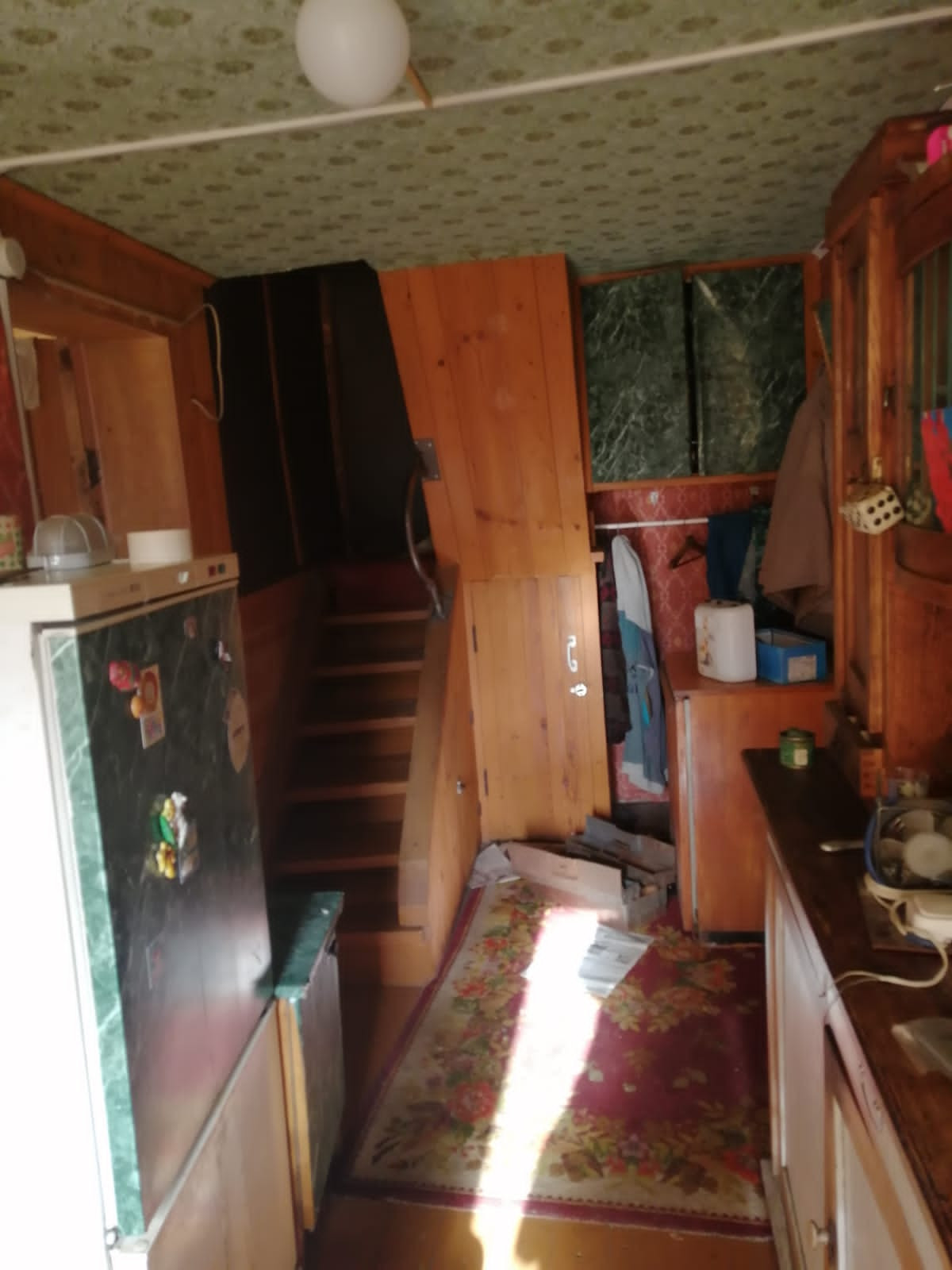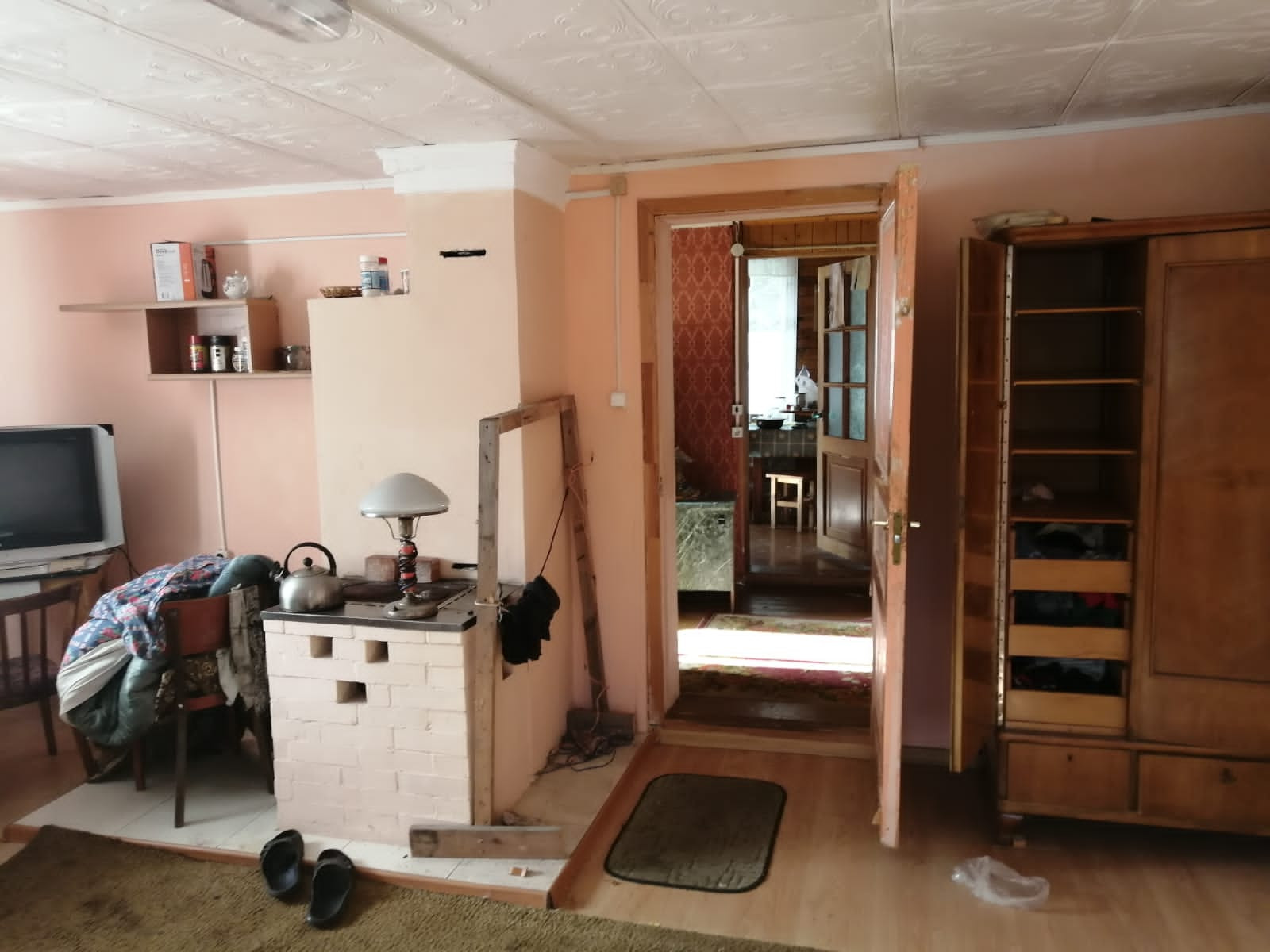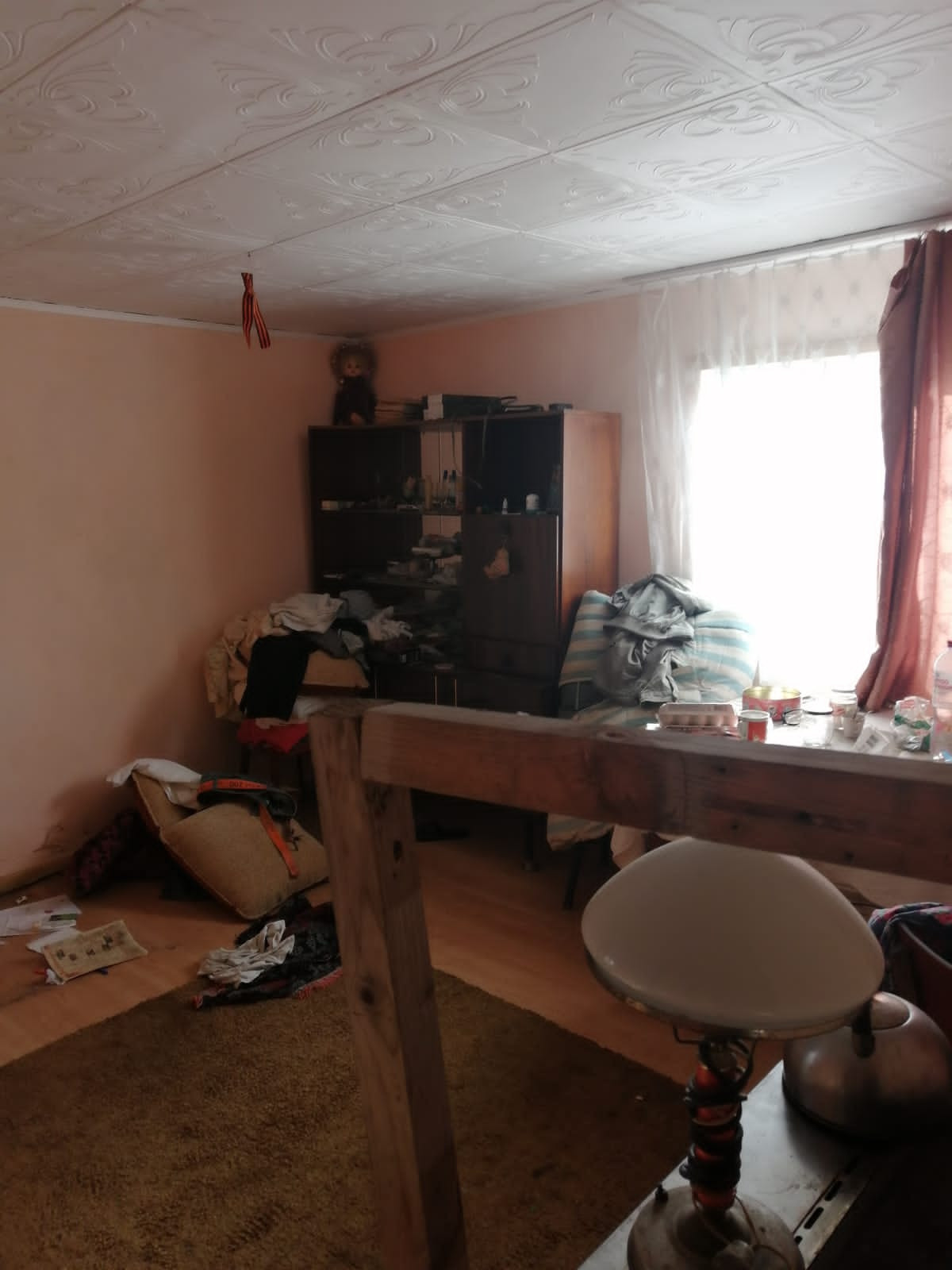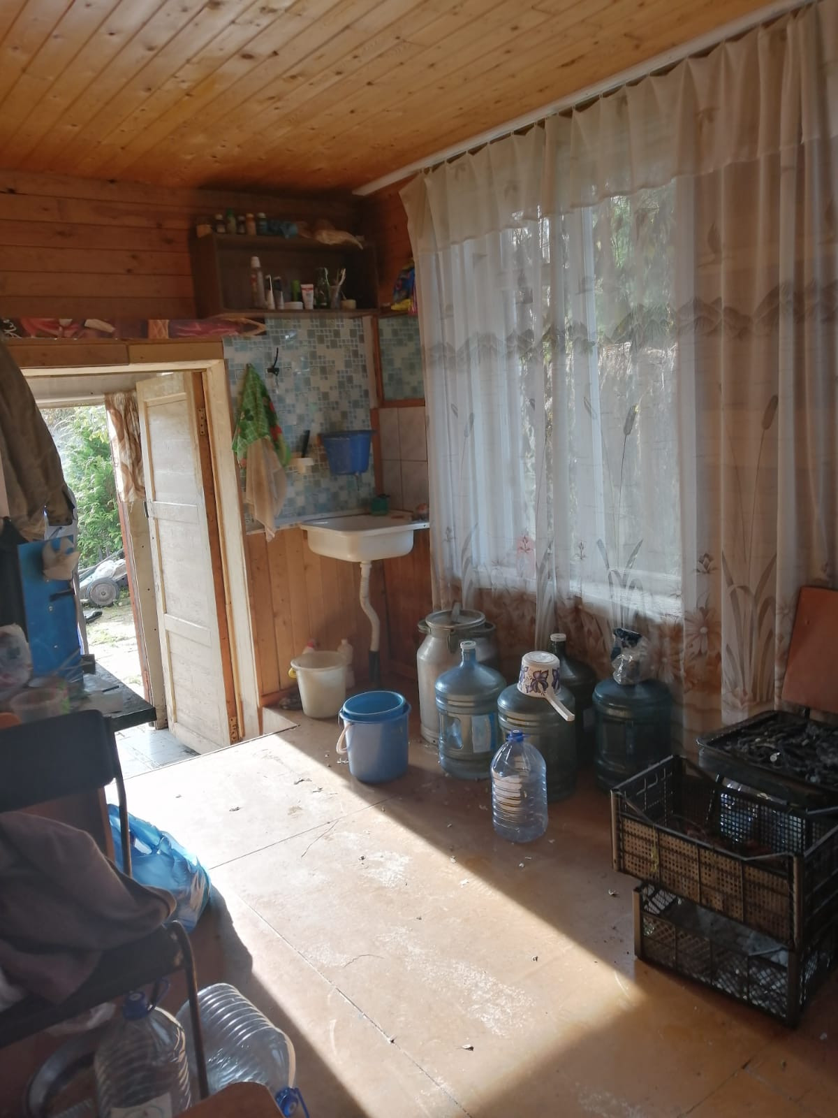 На участке расположен дом, из бруса, площадью  примерно 60 кв..м,, обшит сайдингом, 2 этажа, три комнаты и кухня,  оба жилые, обшит вагонкой. Отопление дома - печное. Дом не оформлен