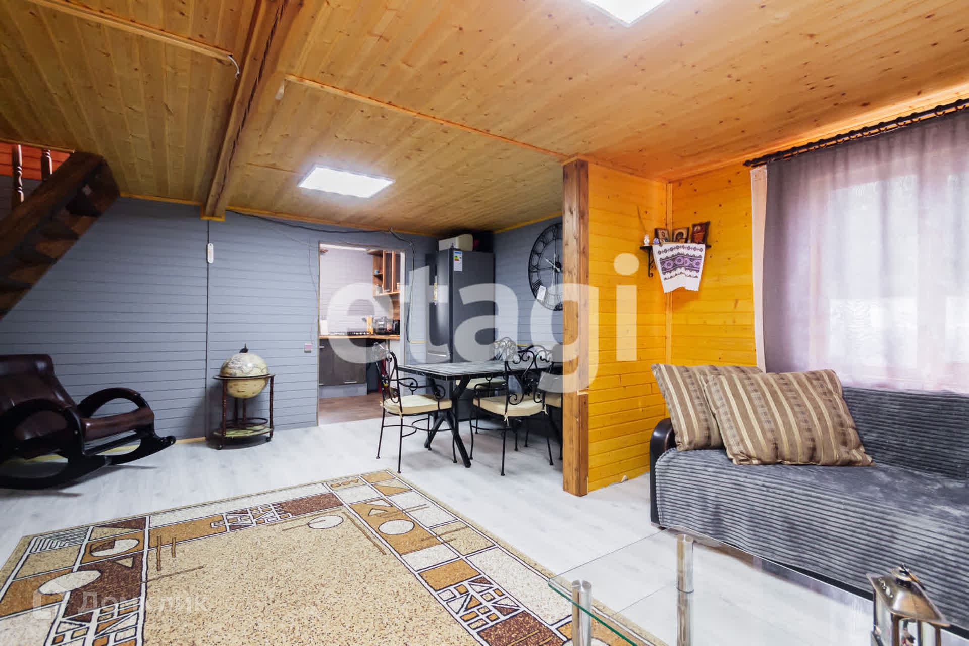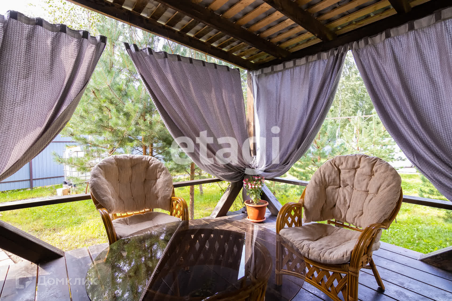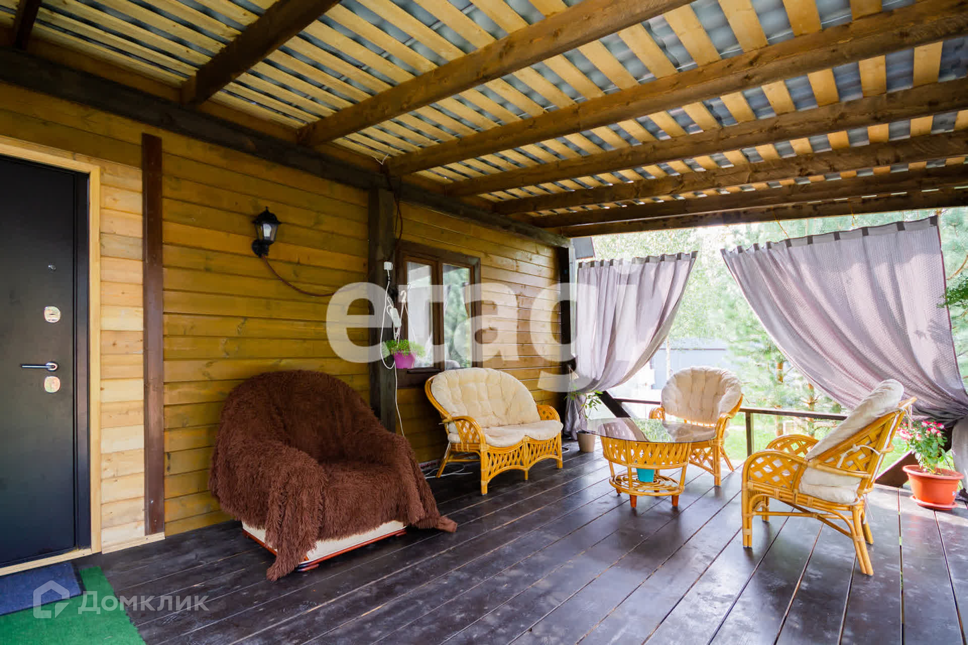 К дому пристроена крытая, современная ТЕРРАСА из бруса , где можно проводить время с друзьями, отдыхать за чашечкой кофе и наслаждаться пением птиц, так как на самом участке и вокруг имеется достаточное количество деревьев и живописная местность!
