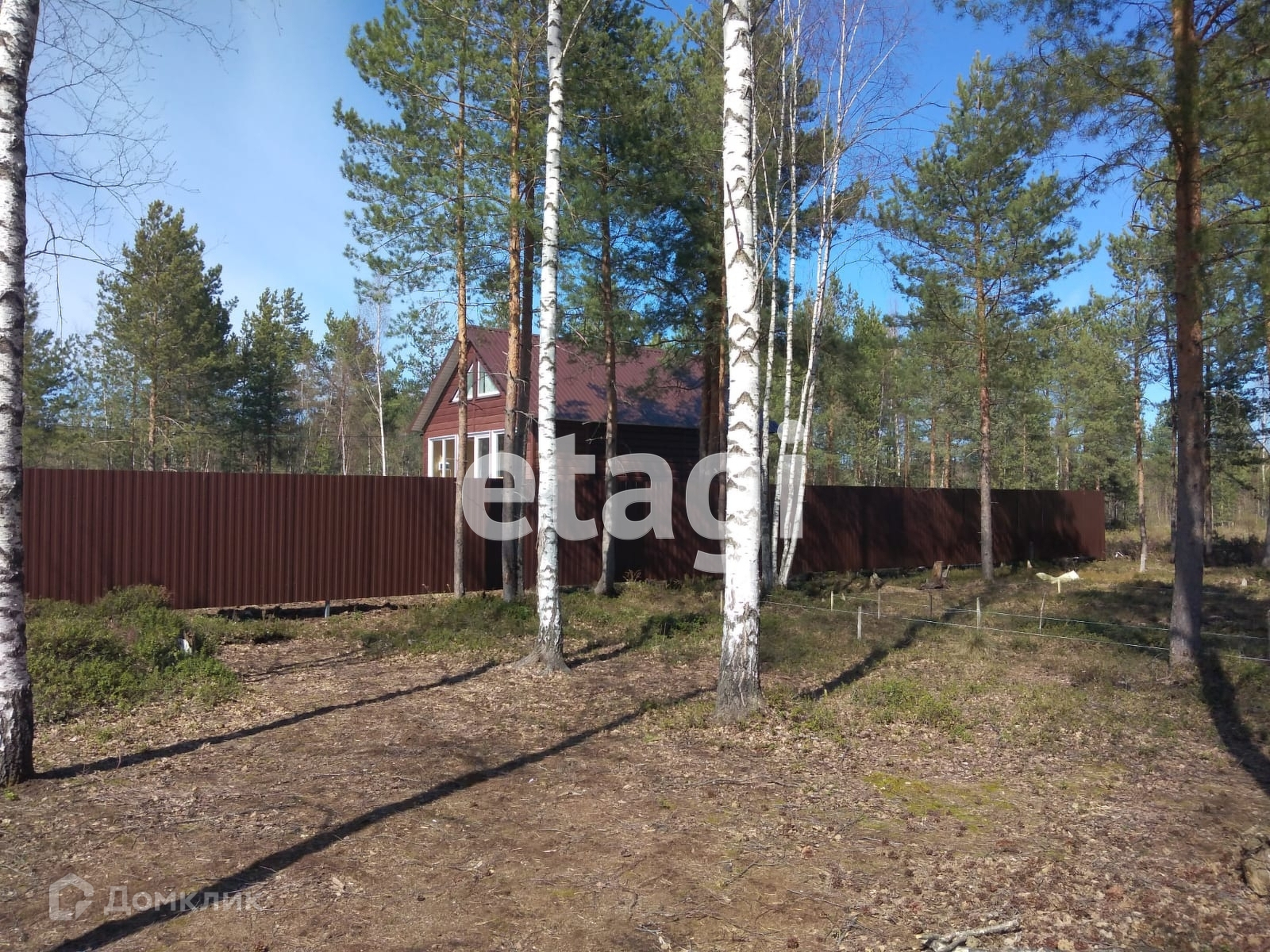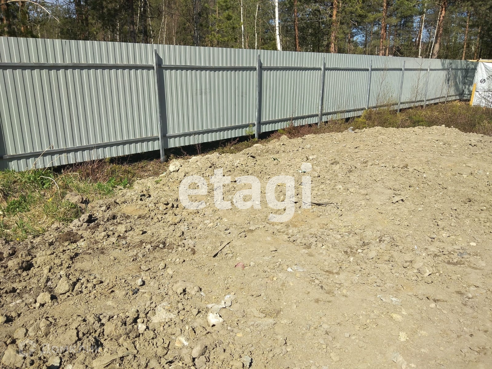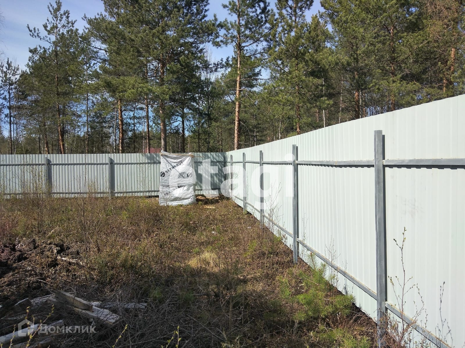 Сухой ровный участок 6 соток огорожен забором из профлиста.