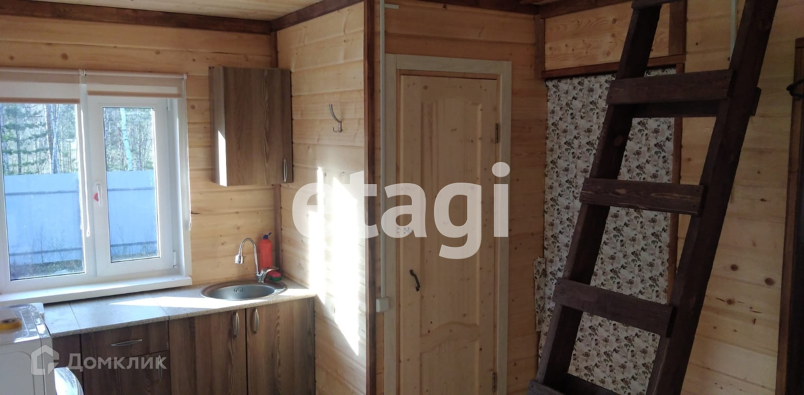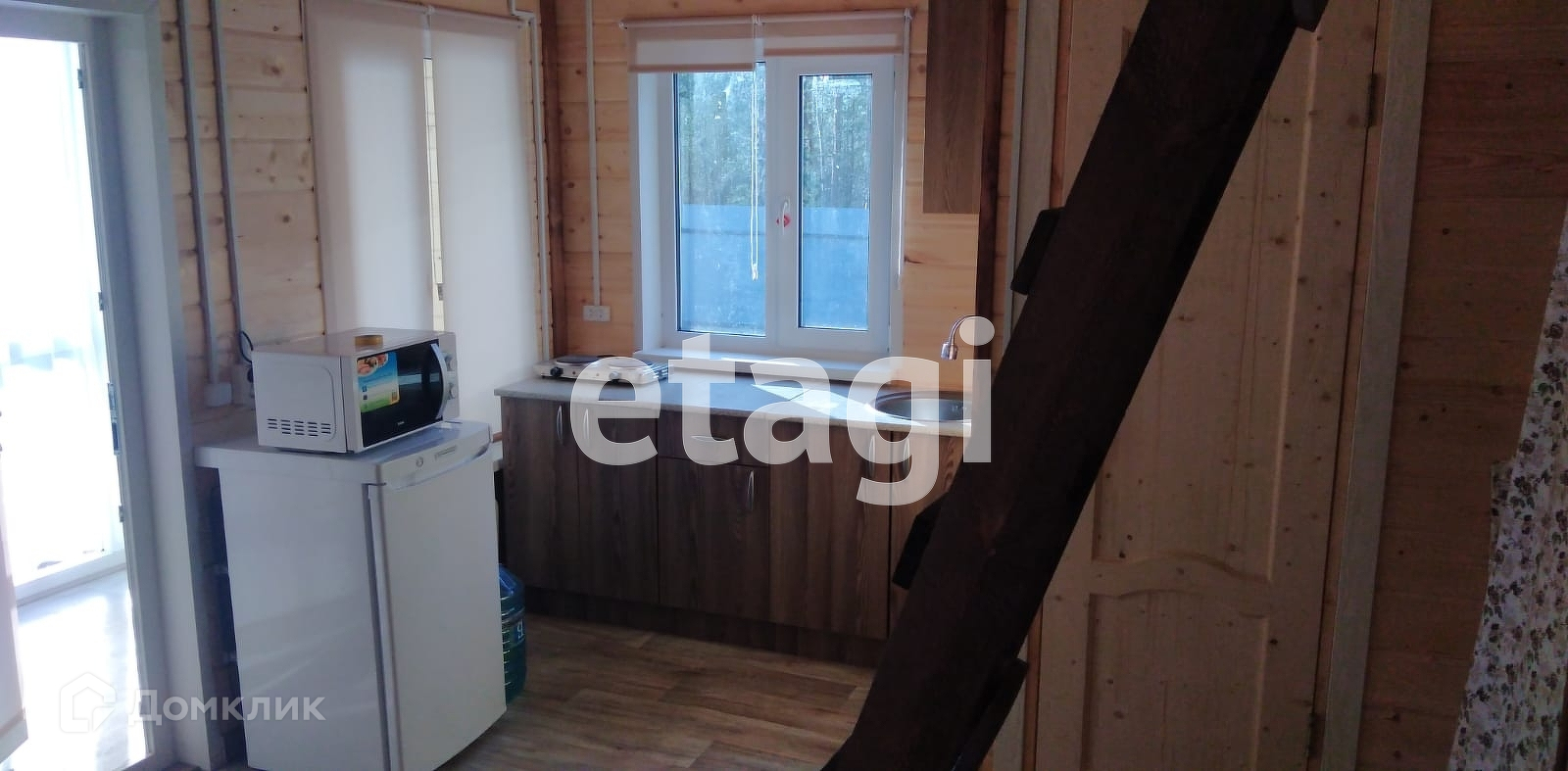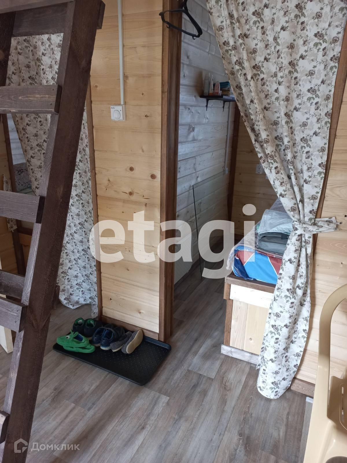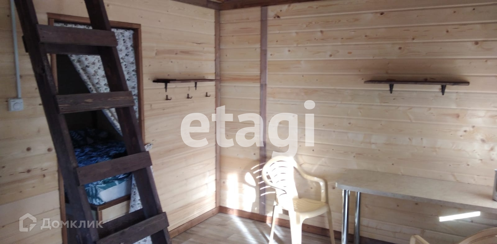 В доме спальня, кухня-гостиная, веранда, также на втором ярусе обустроены два спальных места, которые при желании можно использовать для хранения вещей.