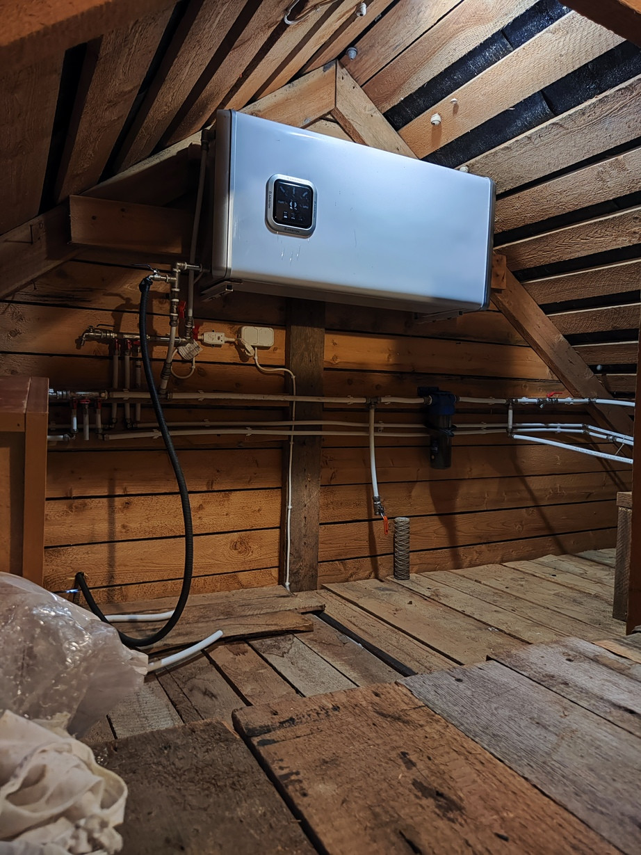 Диаметр бревен - более, чем достаточный для наших холодных зим. По глубине подоконников это видно. Сруб был куплен на выставке в Новгороде. В самые холодные зимы было достаточно протопить раз в двое суток. Тепло держит отлично, т.к. строили для себя, а не на продажу