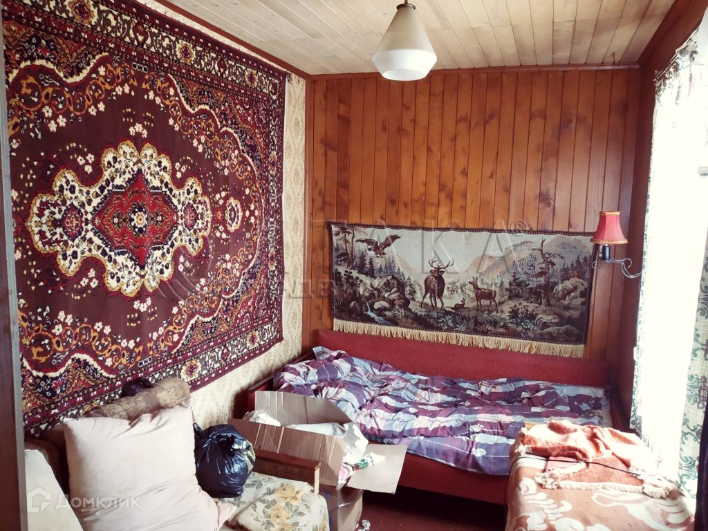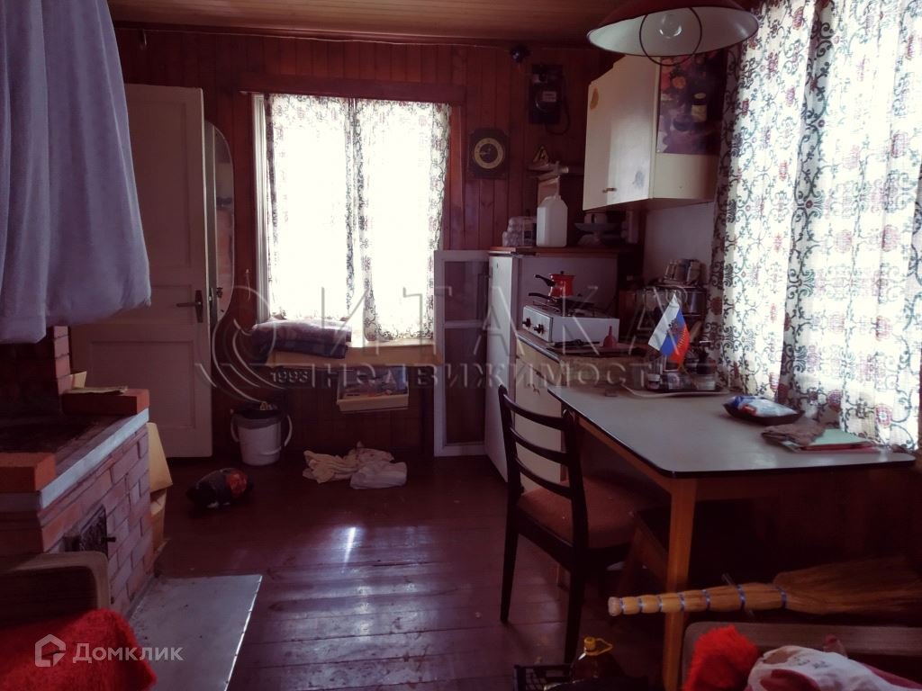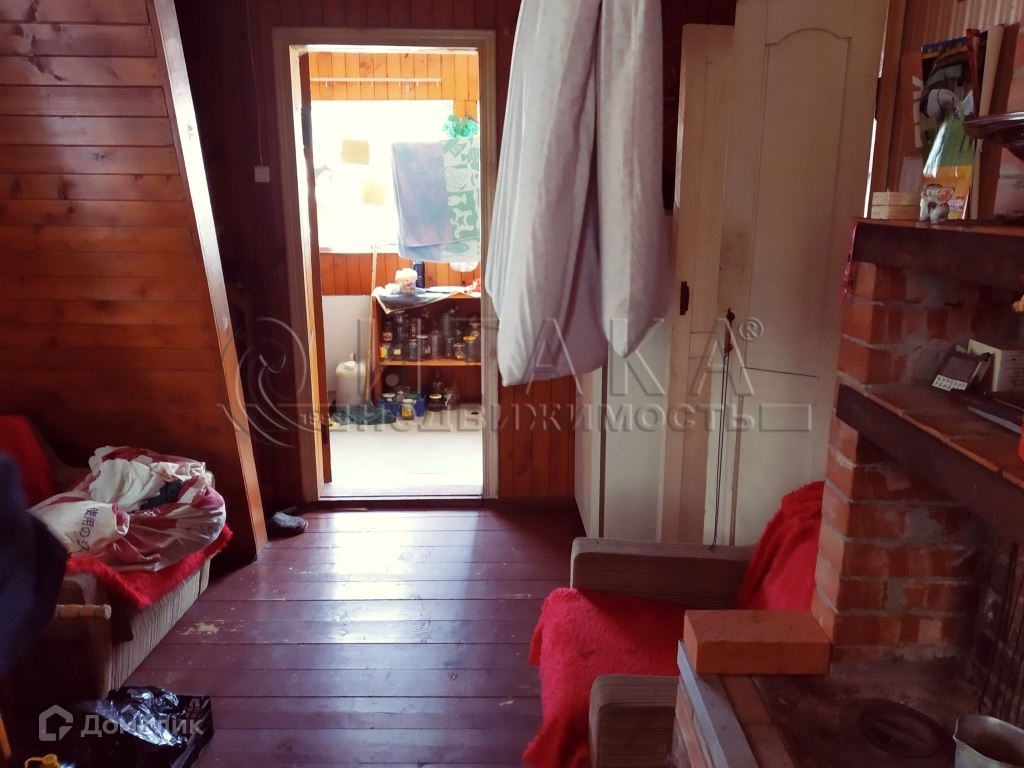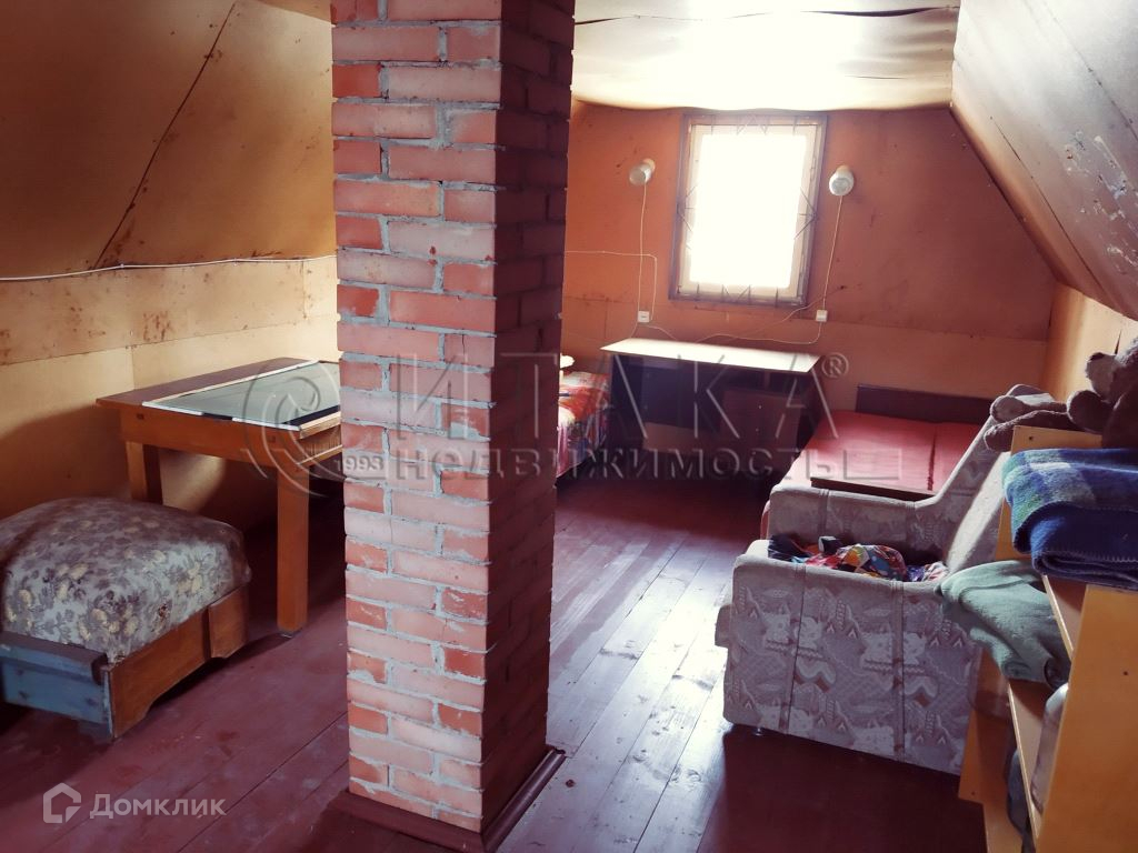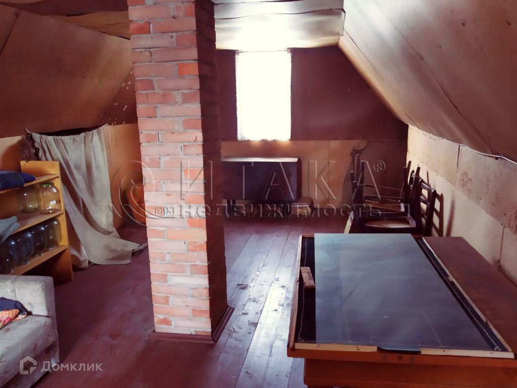 Дом двухэтажный площадью 50 кв.м., на первом этаже располагается веранда 6 кв.м, кухня 12 кв.м, две комнаты (8,7 + 9,2 кв.м), на втором этаже комната 9 кв.м, холл 5 кв.м и подсобные помещения. Дом из бруса 150мм на ленточном фундаменте, крыша - шифер, полы — доска. В доме имеется печь.