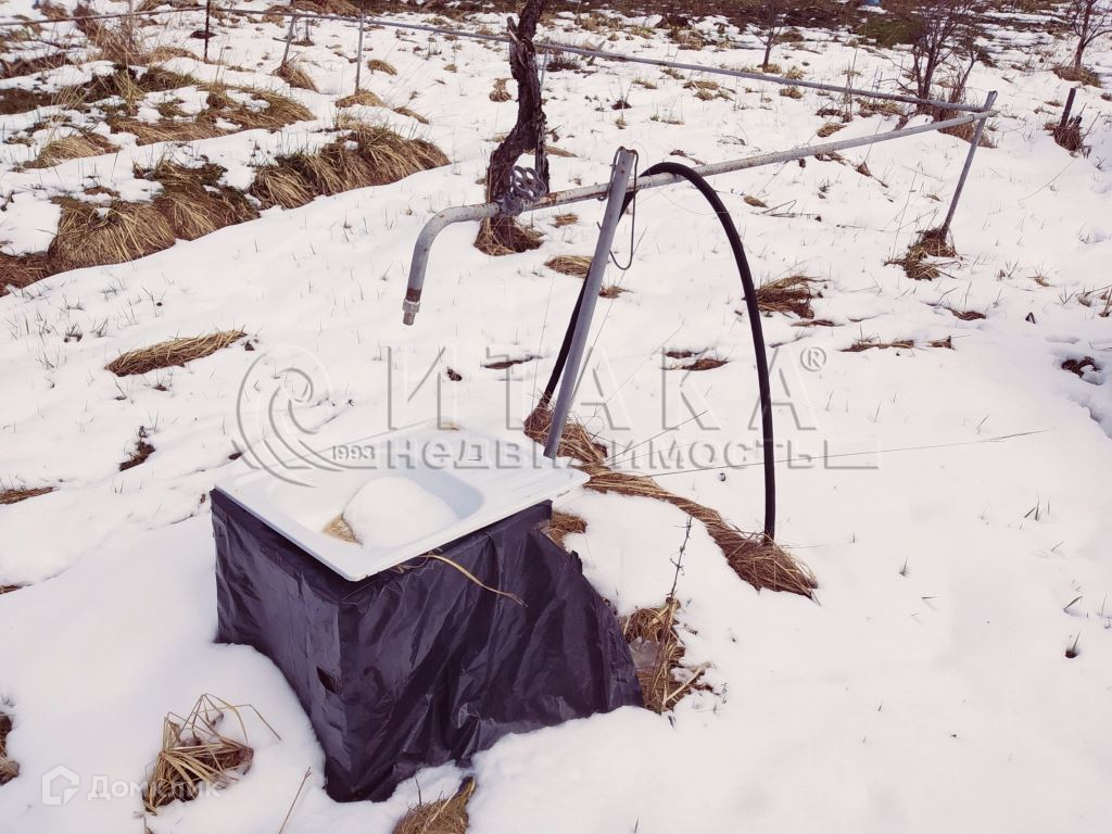 На участке есть летний водопровод. Имеется теплица, хозяйственная постройка для садового инвентаря, постройка для бани, туалет.