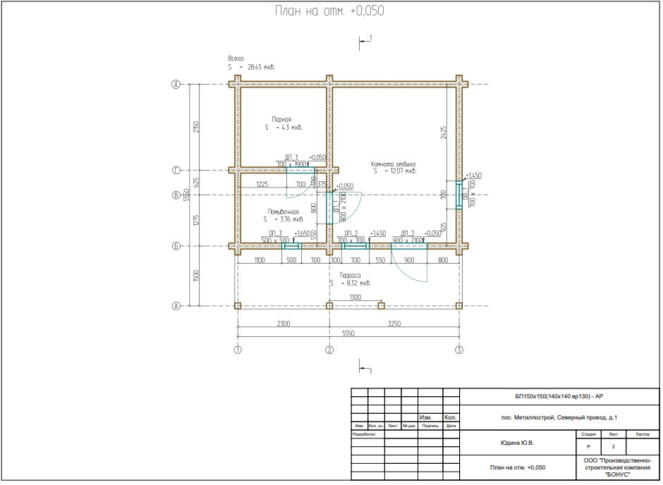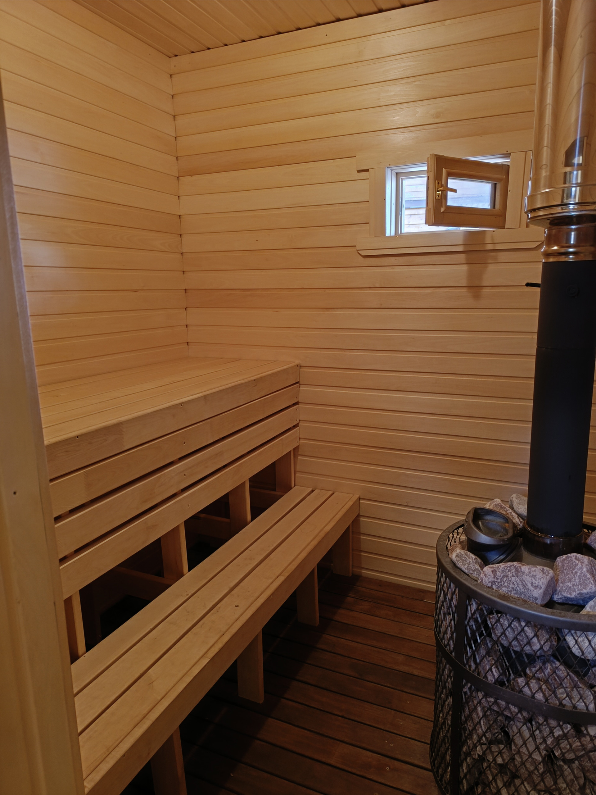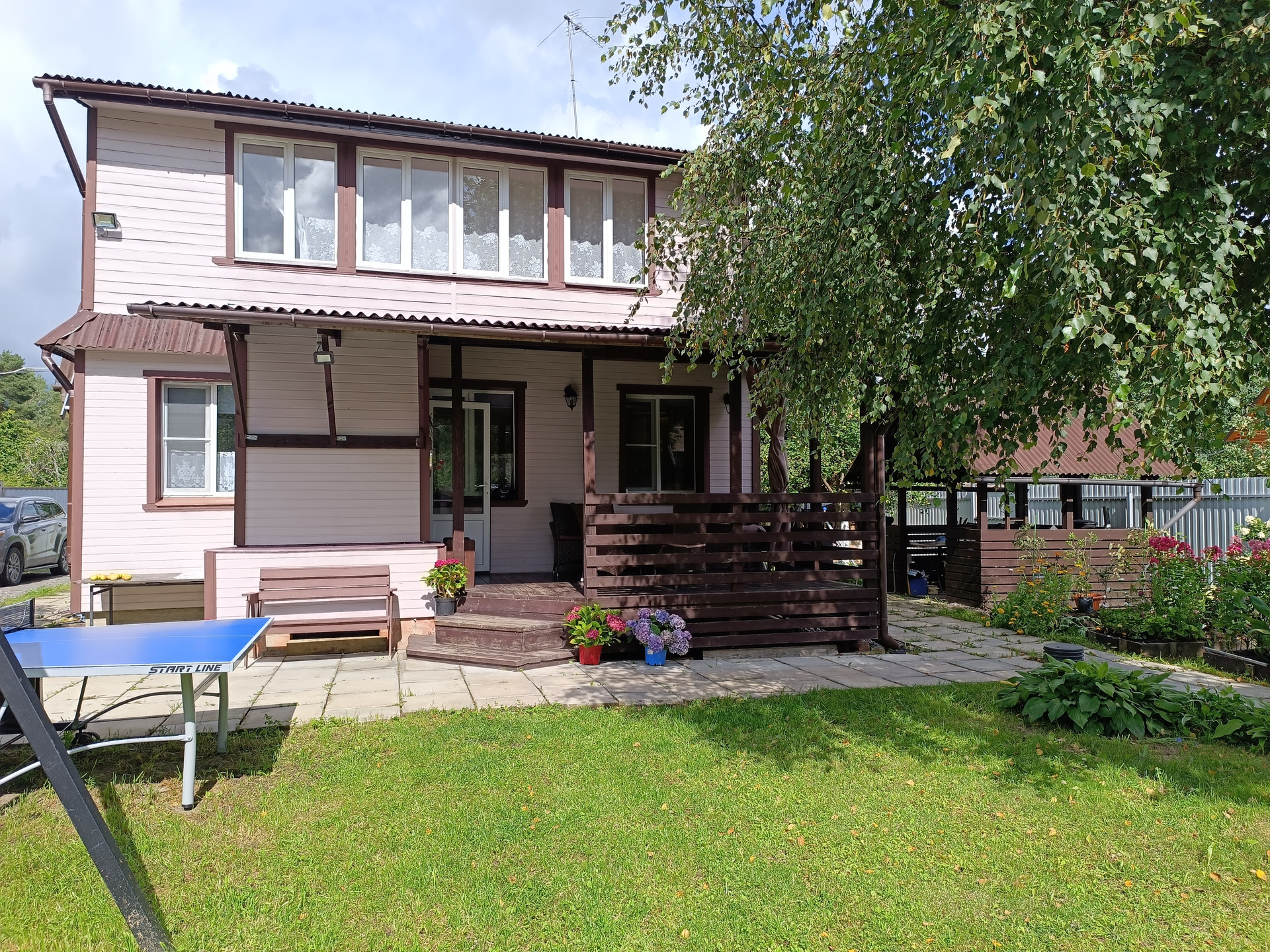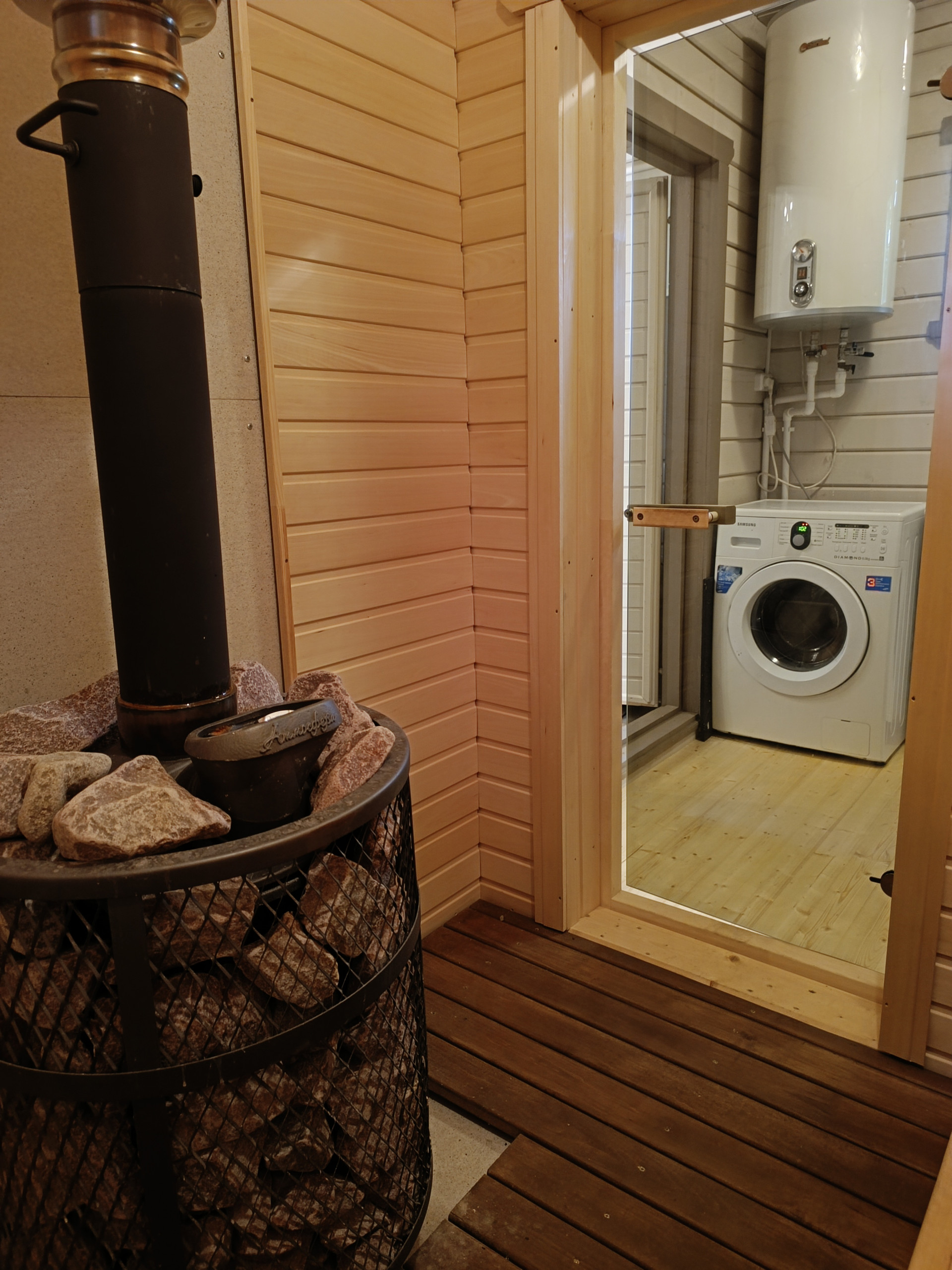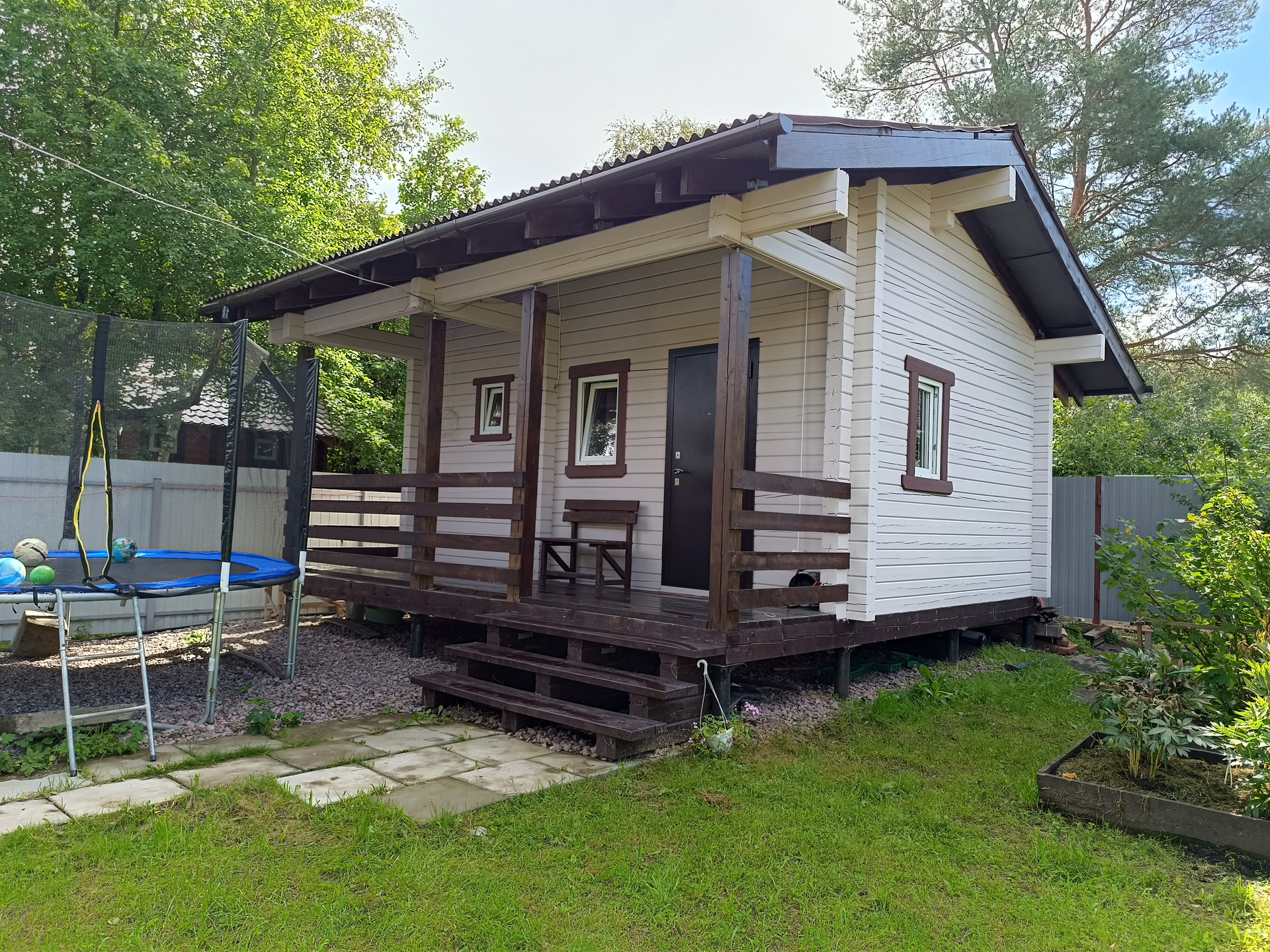 •    Баня (2021г), 6х6 м, строганый брус 14х14 (парилка, ванная, комната отдыха, крытая терраса)
