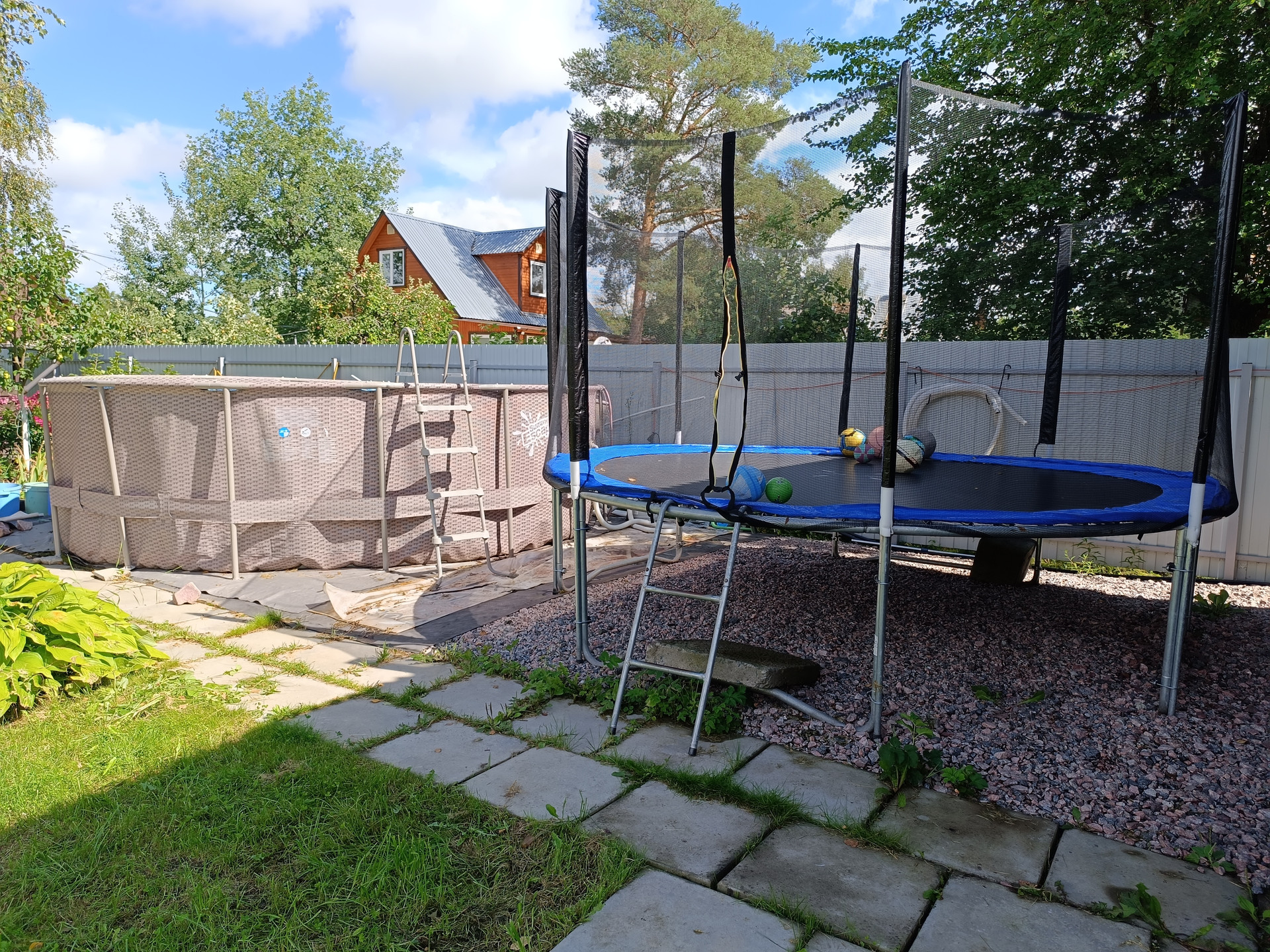 •    Площадка под летний бассейн, качели