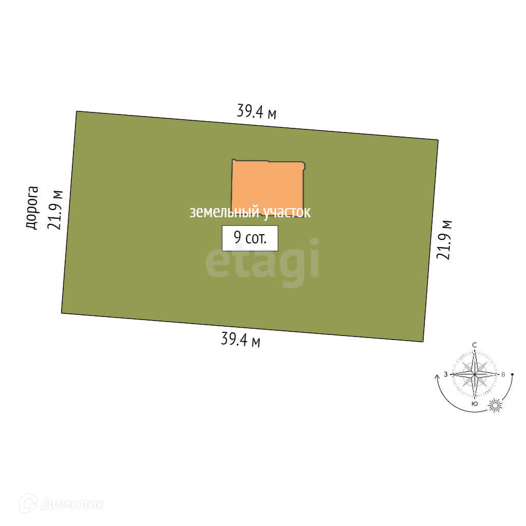 Площадь участка 9 сот.