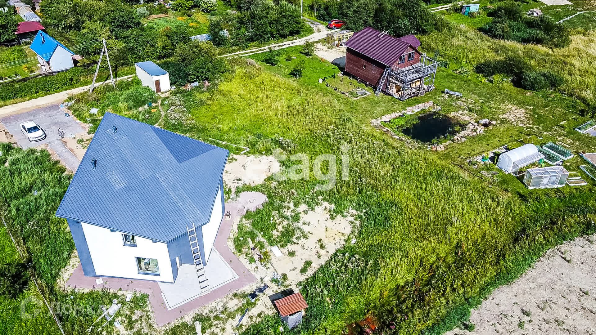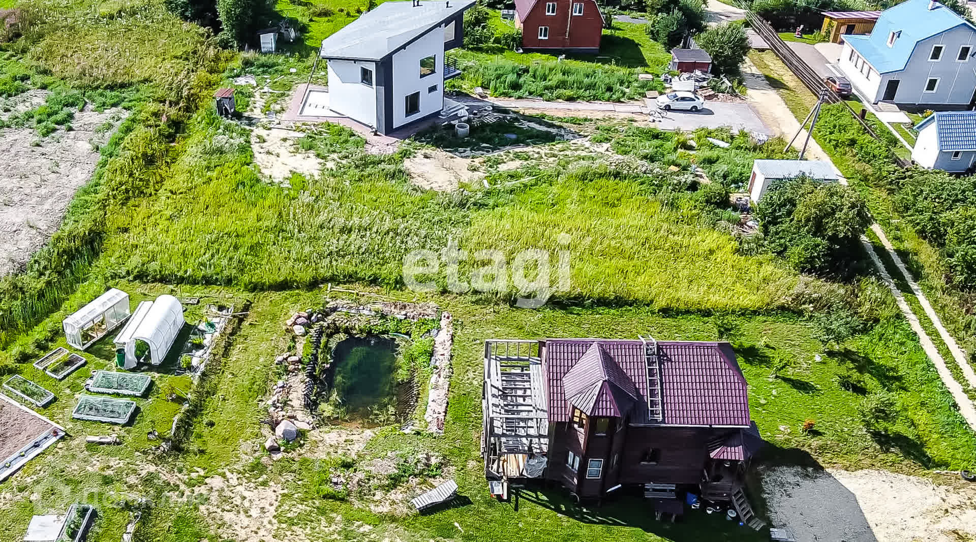 Есть кпп ,дороги 10 сот. Участок на возвышенности с магистральными коммуникациями в 10 км от КАД и СПб. Соседи построили капитальные дома и живут круглогодично.