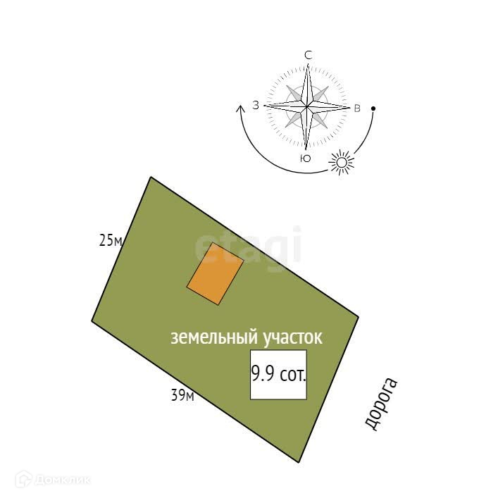 Площадь участка 9.9 сот.