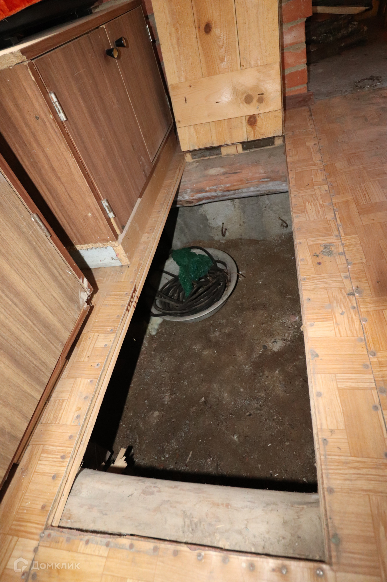 У дома блочный фундамент, что гарантирует его надежность и стабильность. Стены выполнены из бревенчатого материала. Крыша дома покрыта шифером, что обеспечивает дополнительную защиту от непогоды.